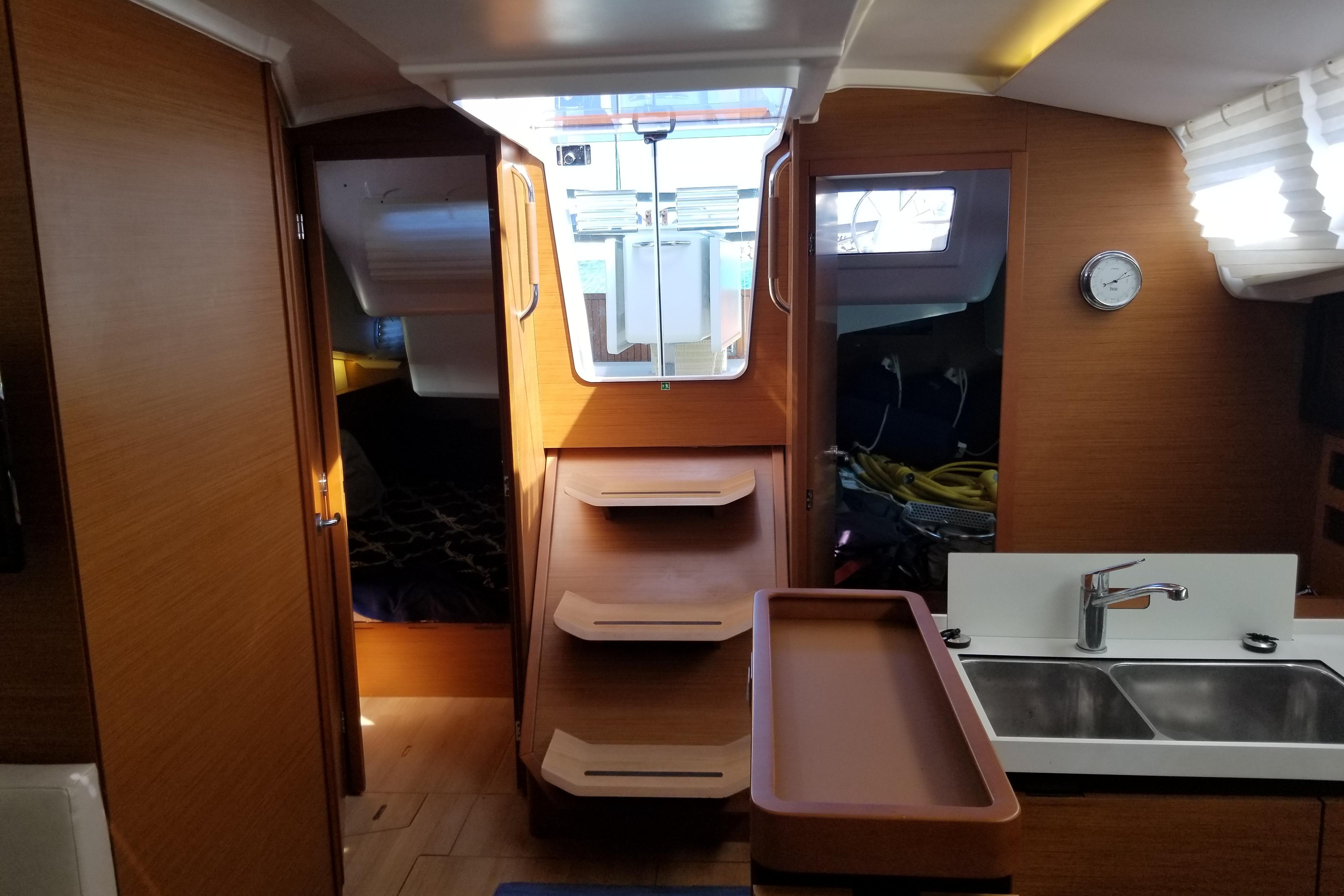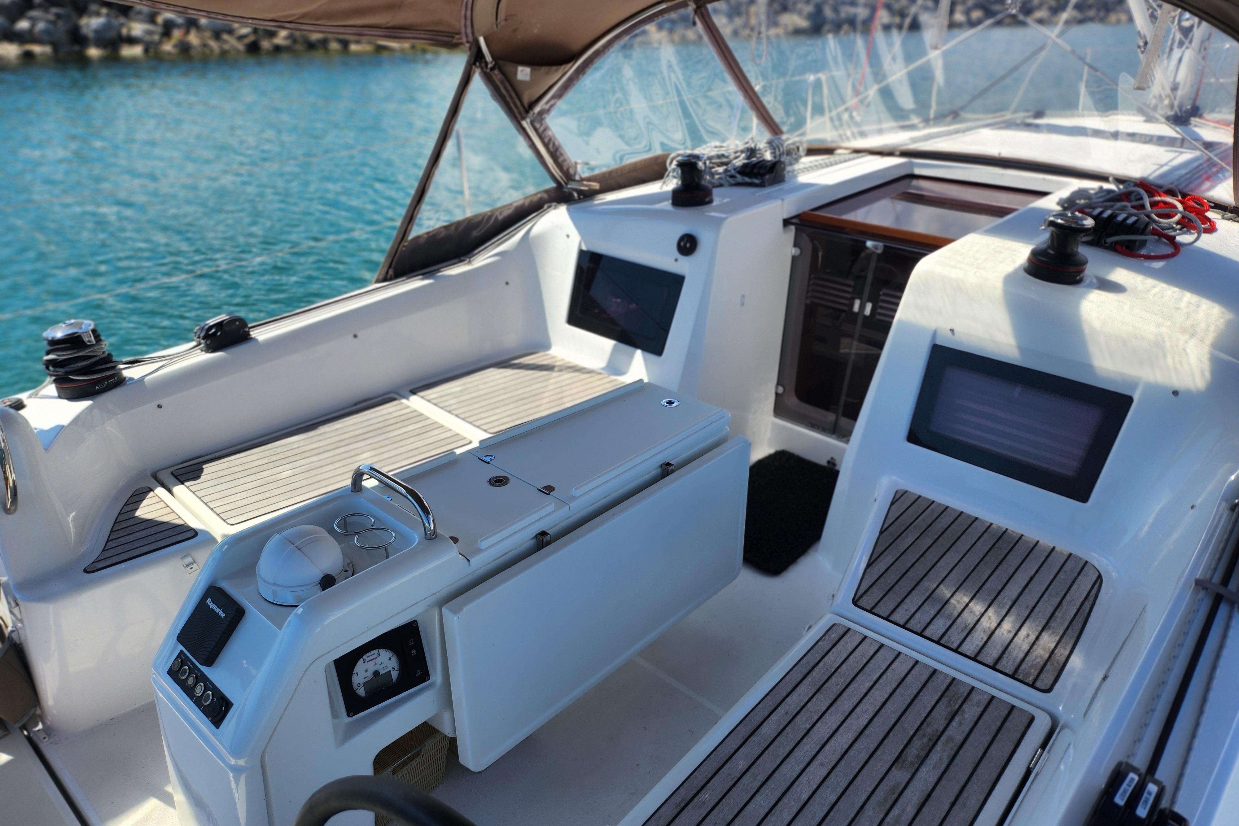 Say goodbye to climbing over deckhands and comings with the walk down side decks and easy access cockpit. The 410 is easy to sail and easy to fall in love with. She has a furling main, furling jib, and all lines lead into the spacious cockpit with electric winches. Rondeau can be sailed shorthanded without diffuculty! Under 120 hours on the Yanmar 45hp engine. Meticulous maintenance regime with records.
