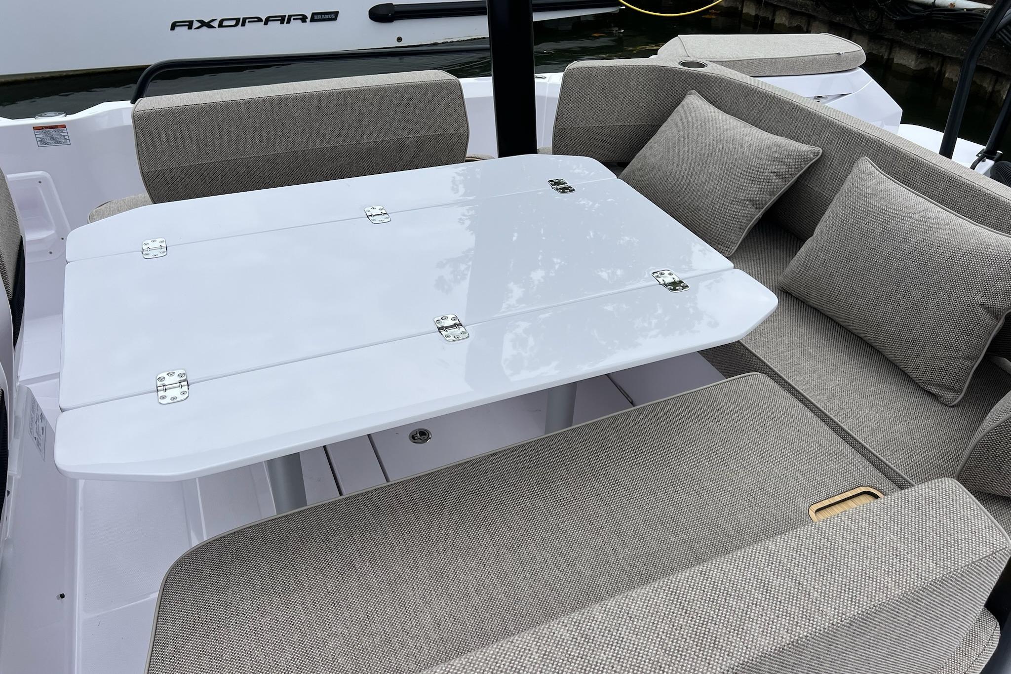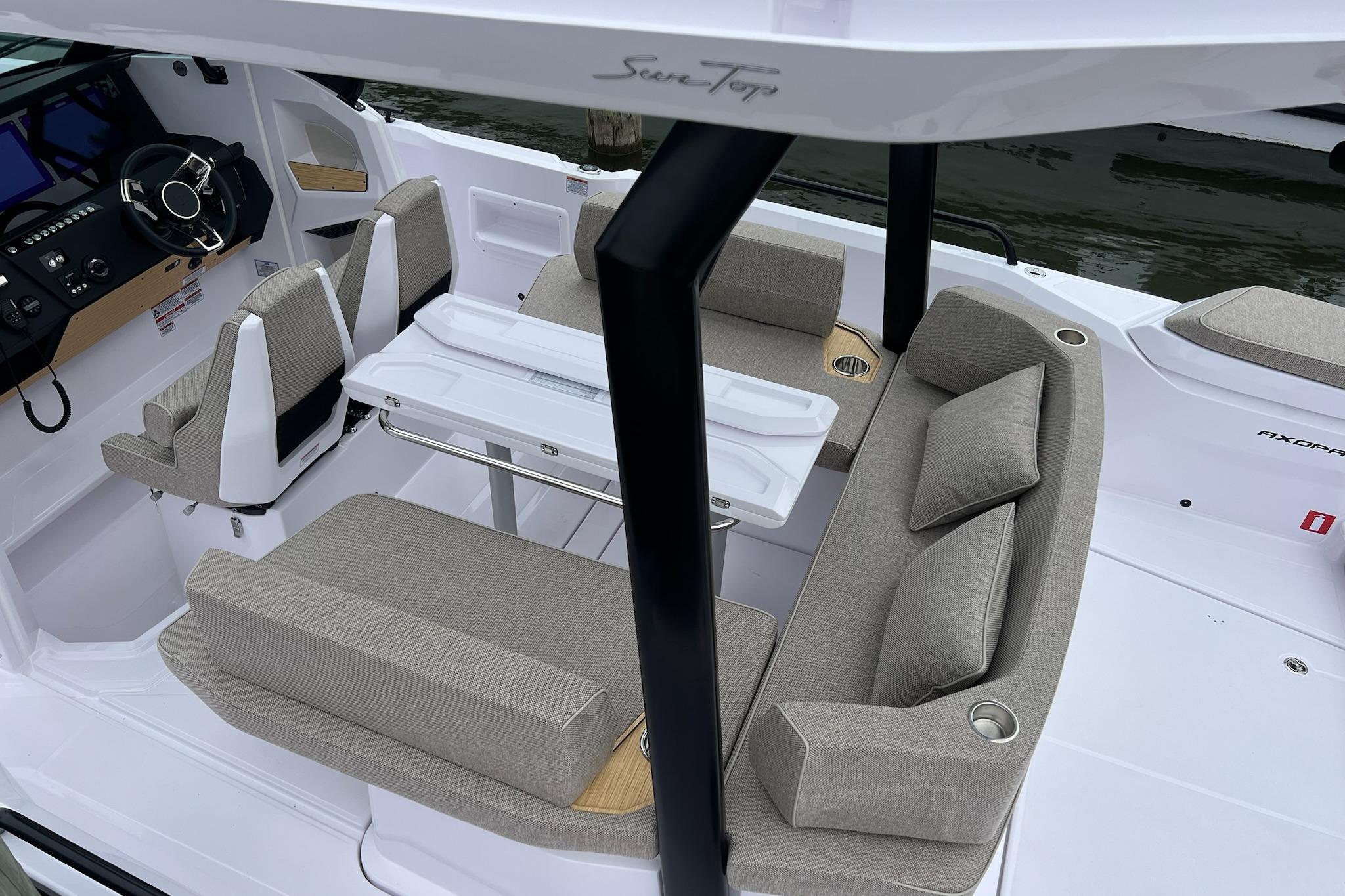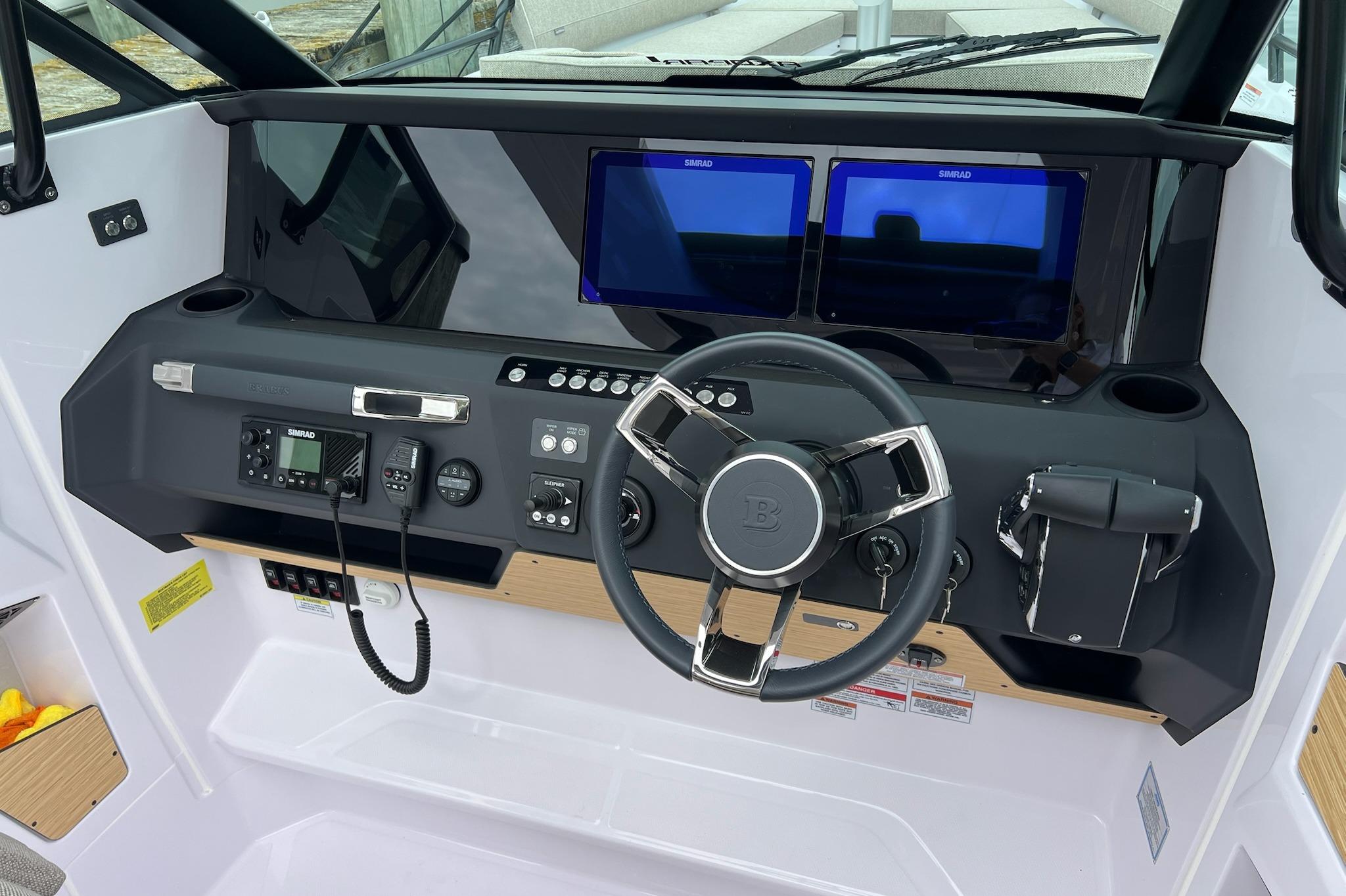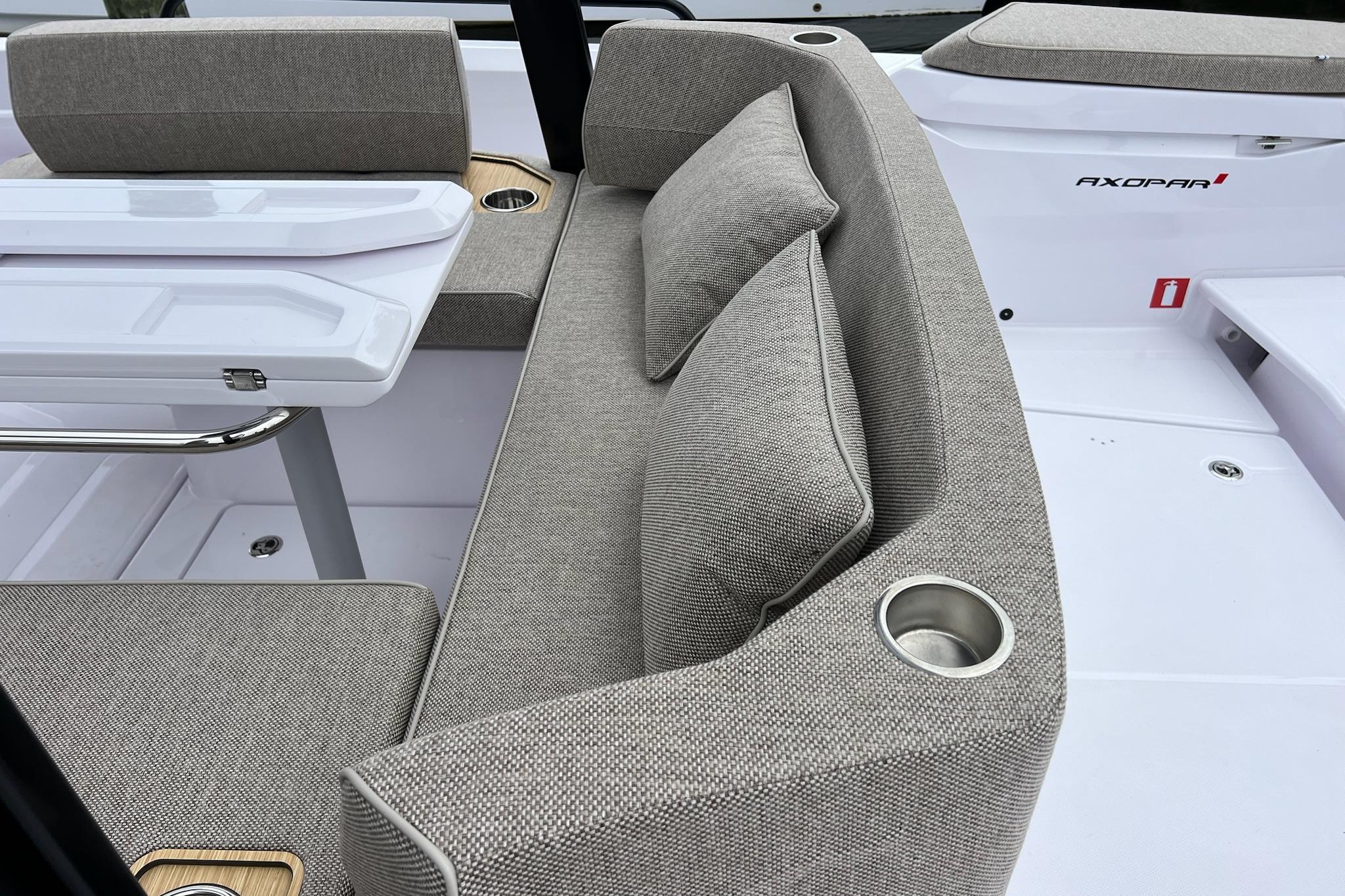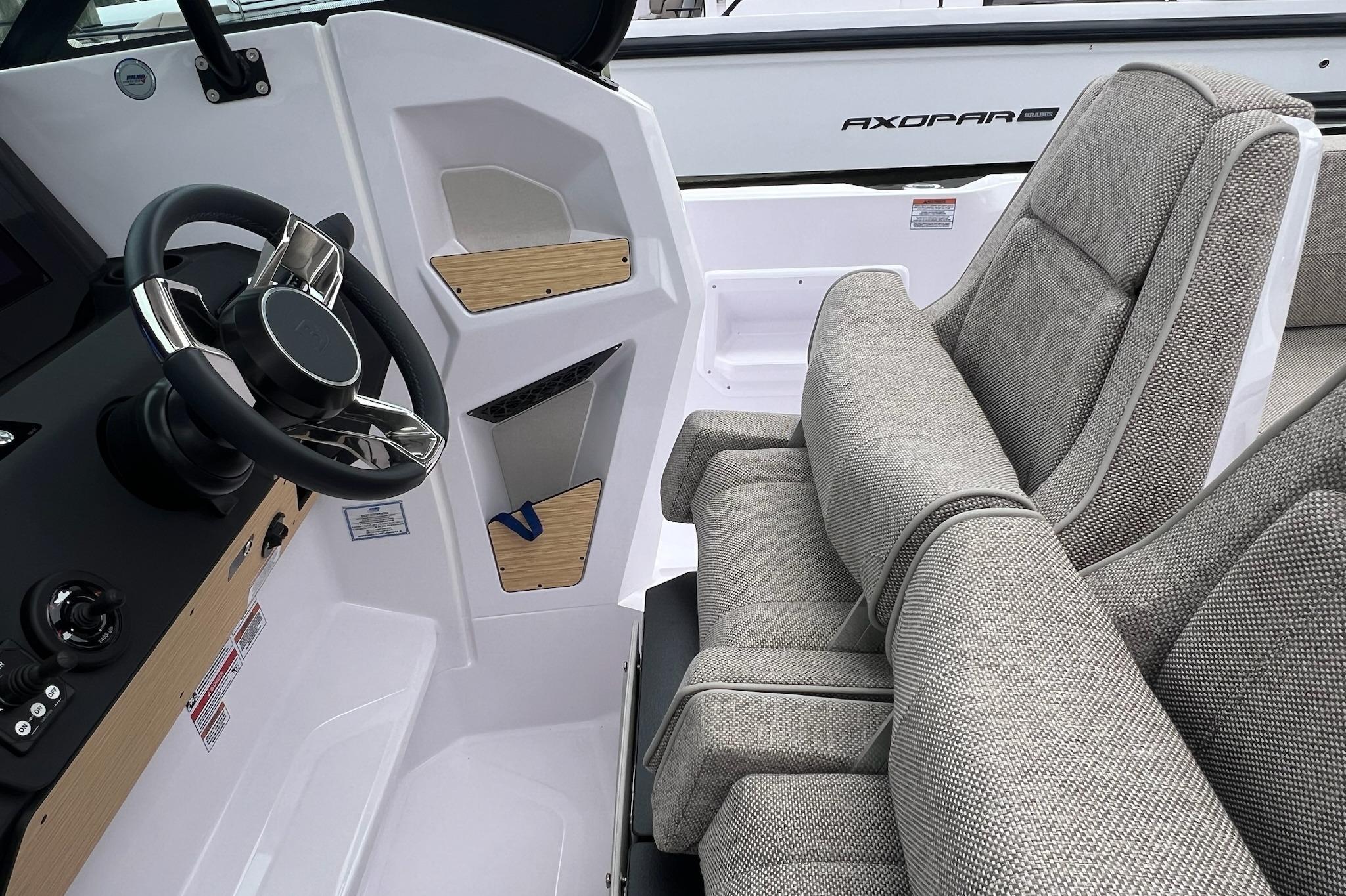 In true Axopar fashion, the helm on the Axopar 29 Sun Top is driver-focused and provides an uncluttered dashboard, with the essentials within hands reach.