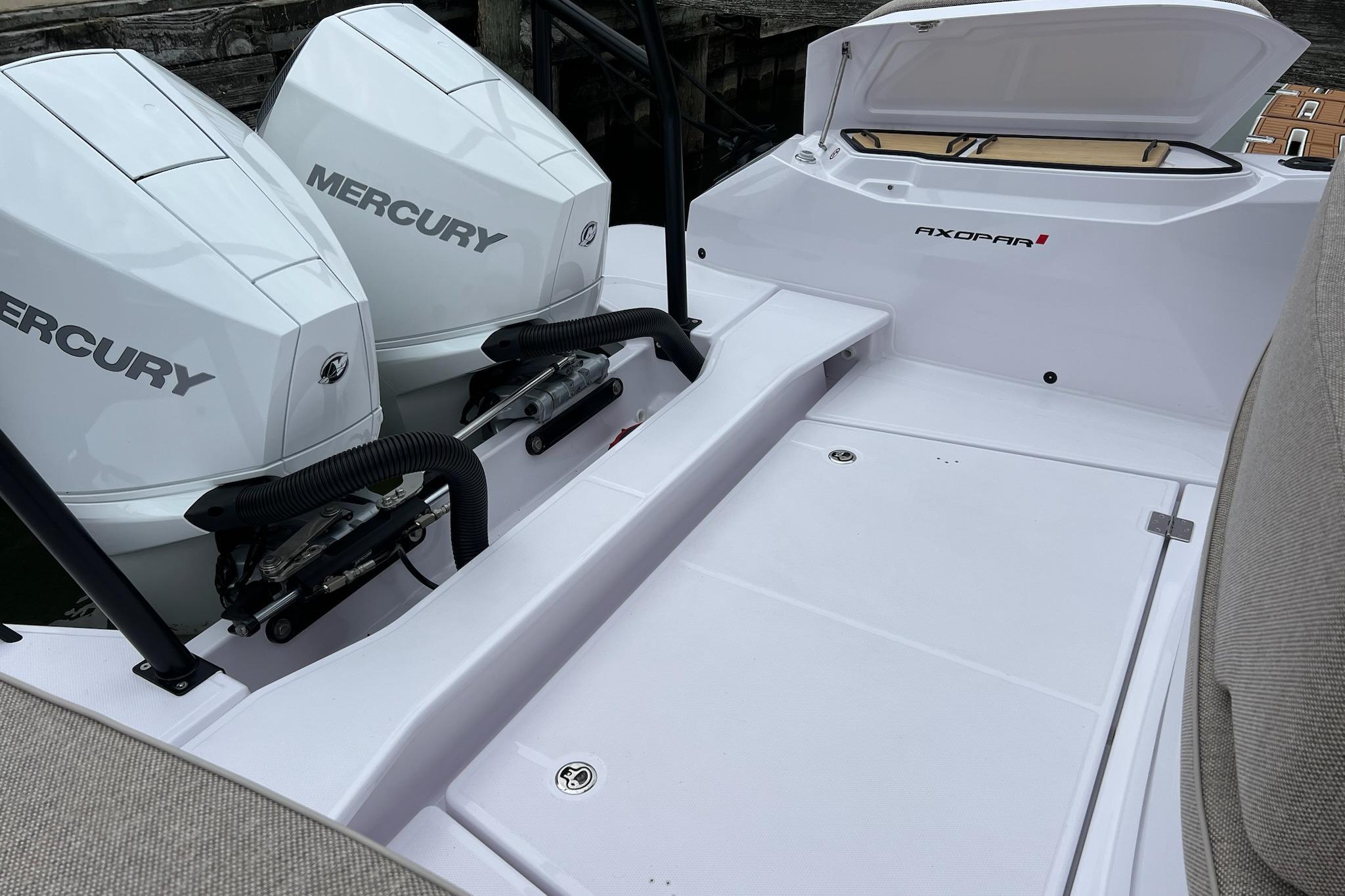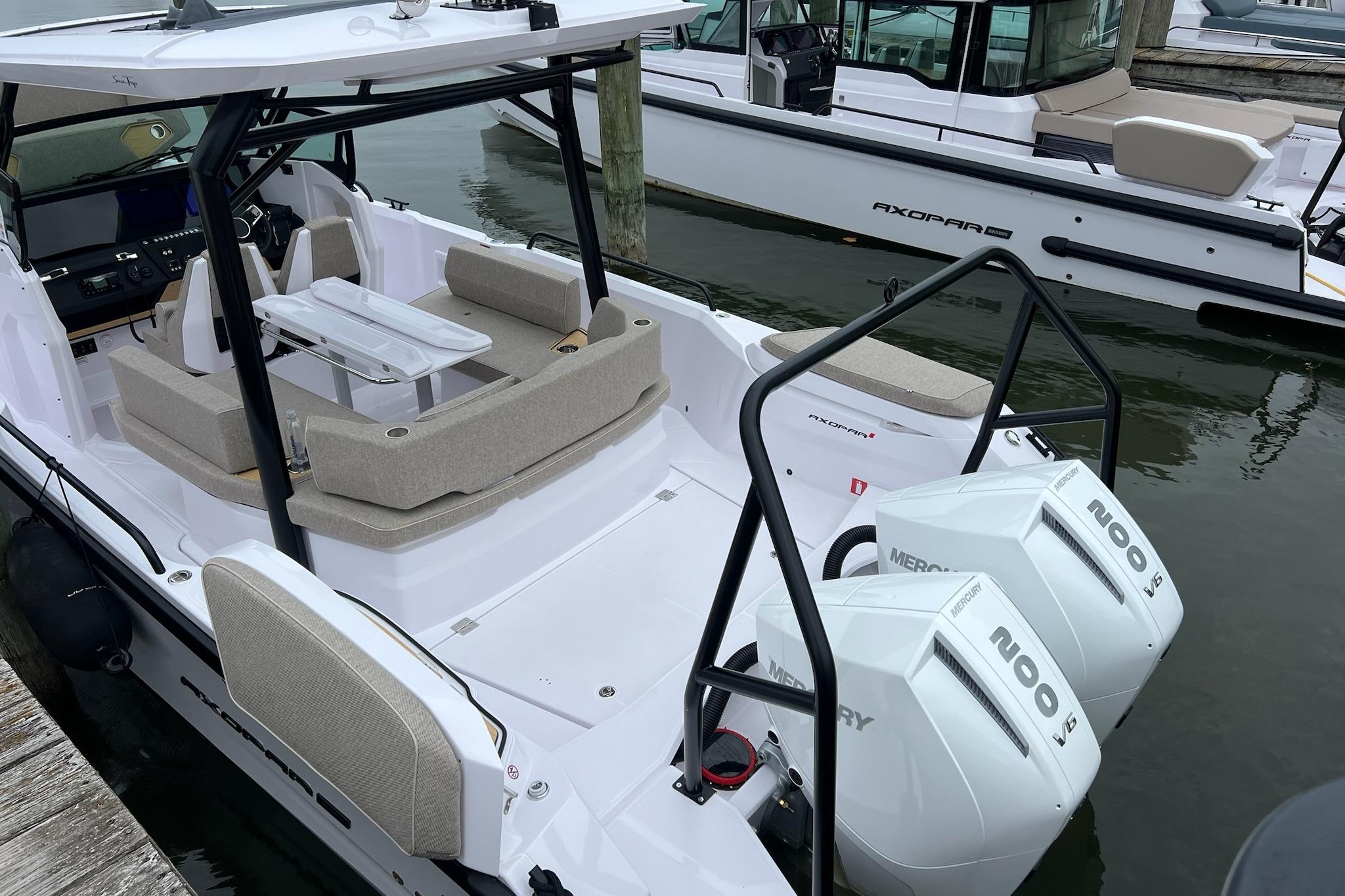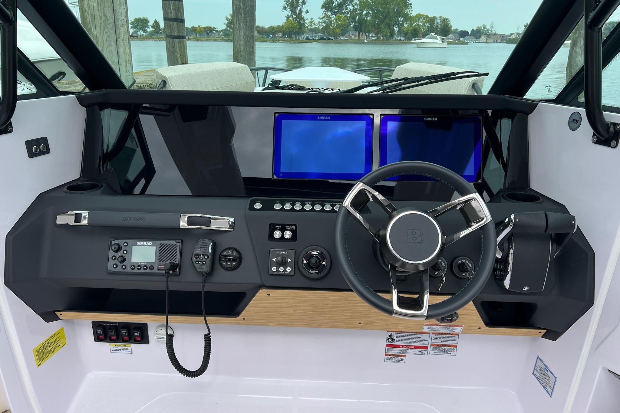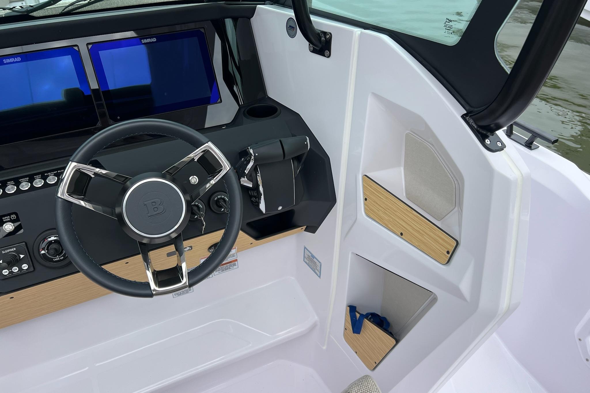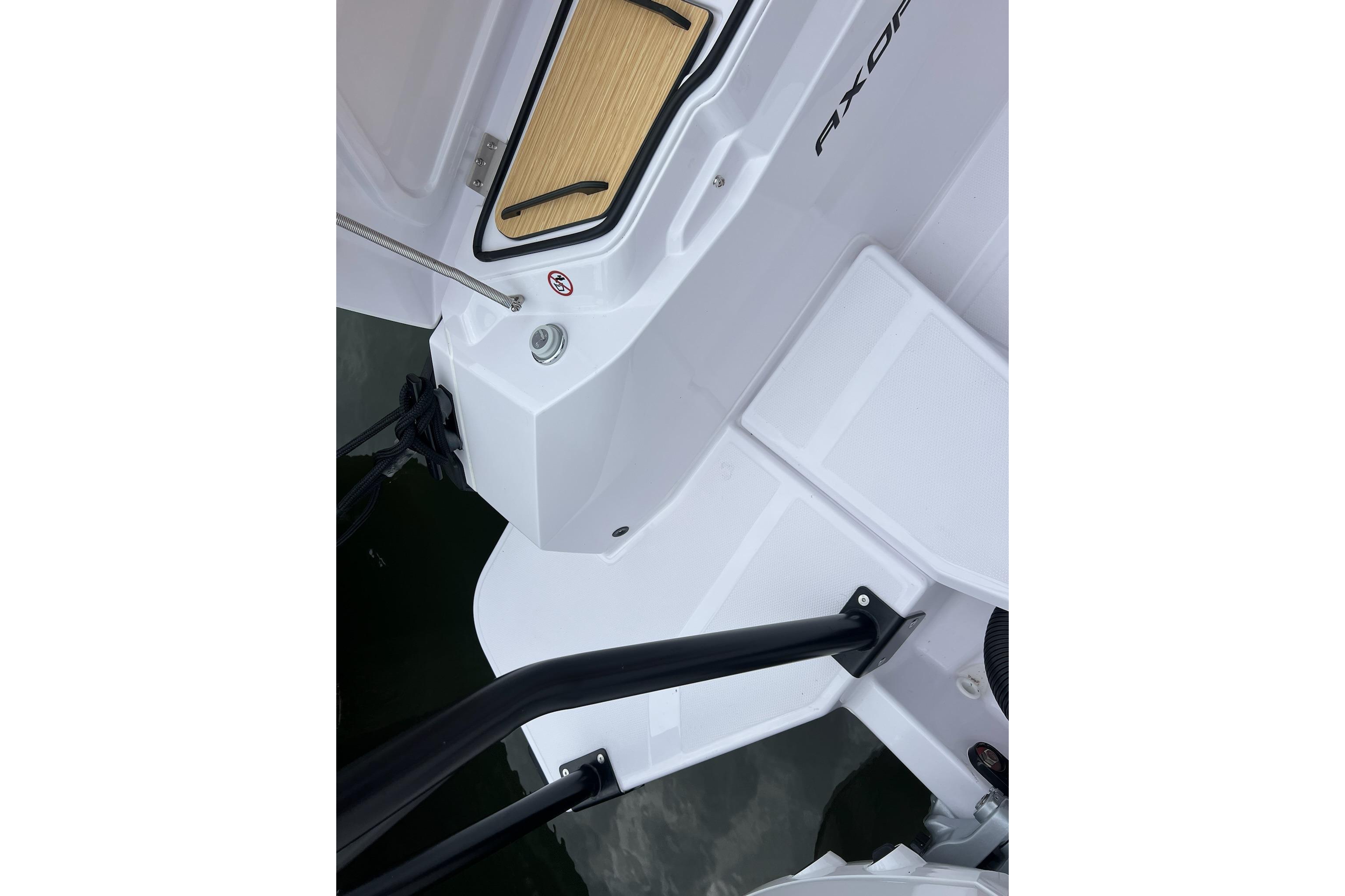In true Axopar fashion, the helm on the Axopar 29 Sun Top is driver-focused and provides an uncluttered dashboard, with the essentials within hands reach.