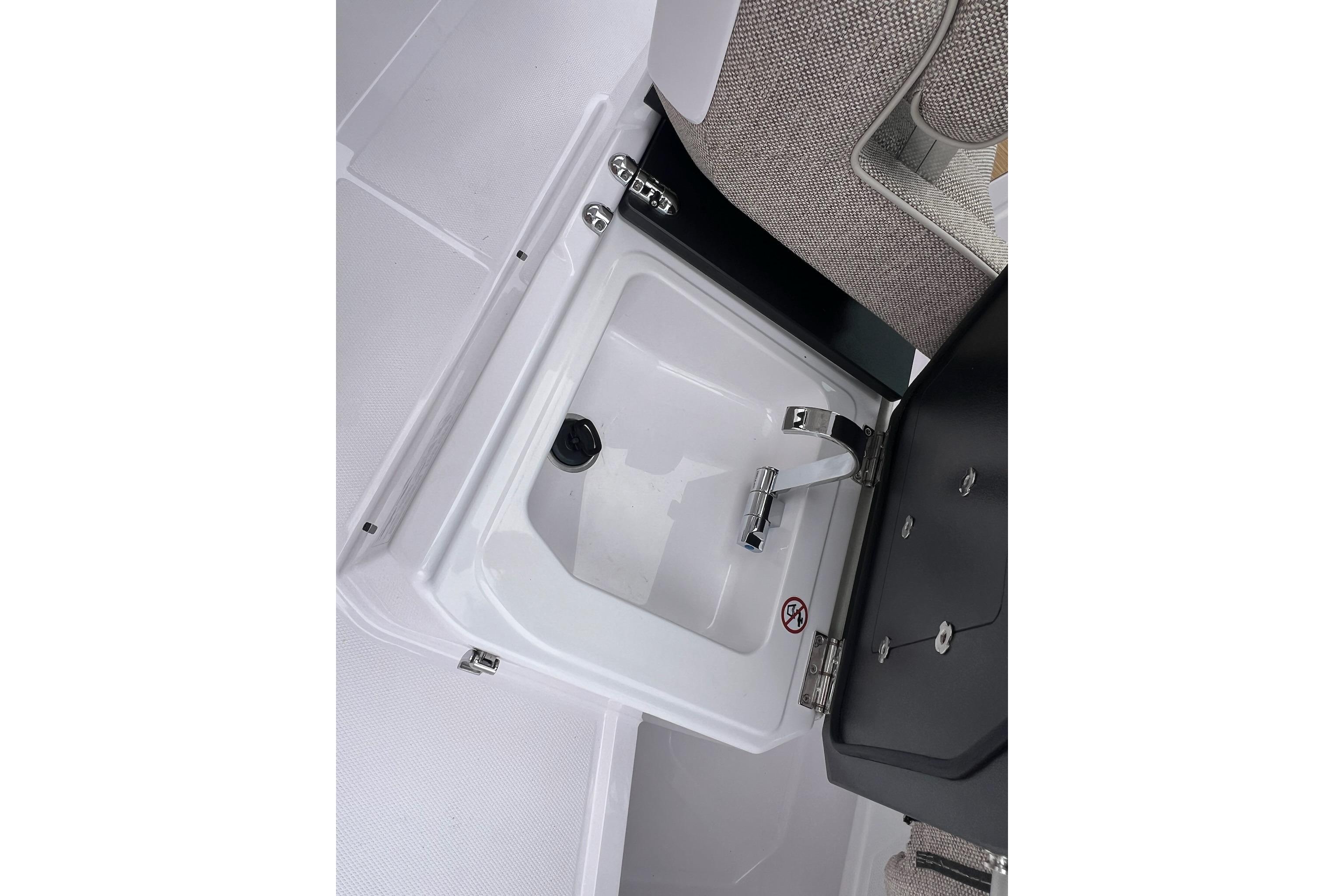 On the foredeck you will find a u-shaped sofa, table with high and low legs, infill cushions offer the option of a huge sunbed, anchor hatch cushions and backrests. This turns the bow into the perfect relaxation and social area.