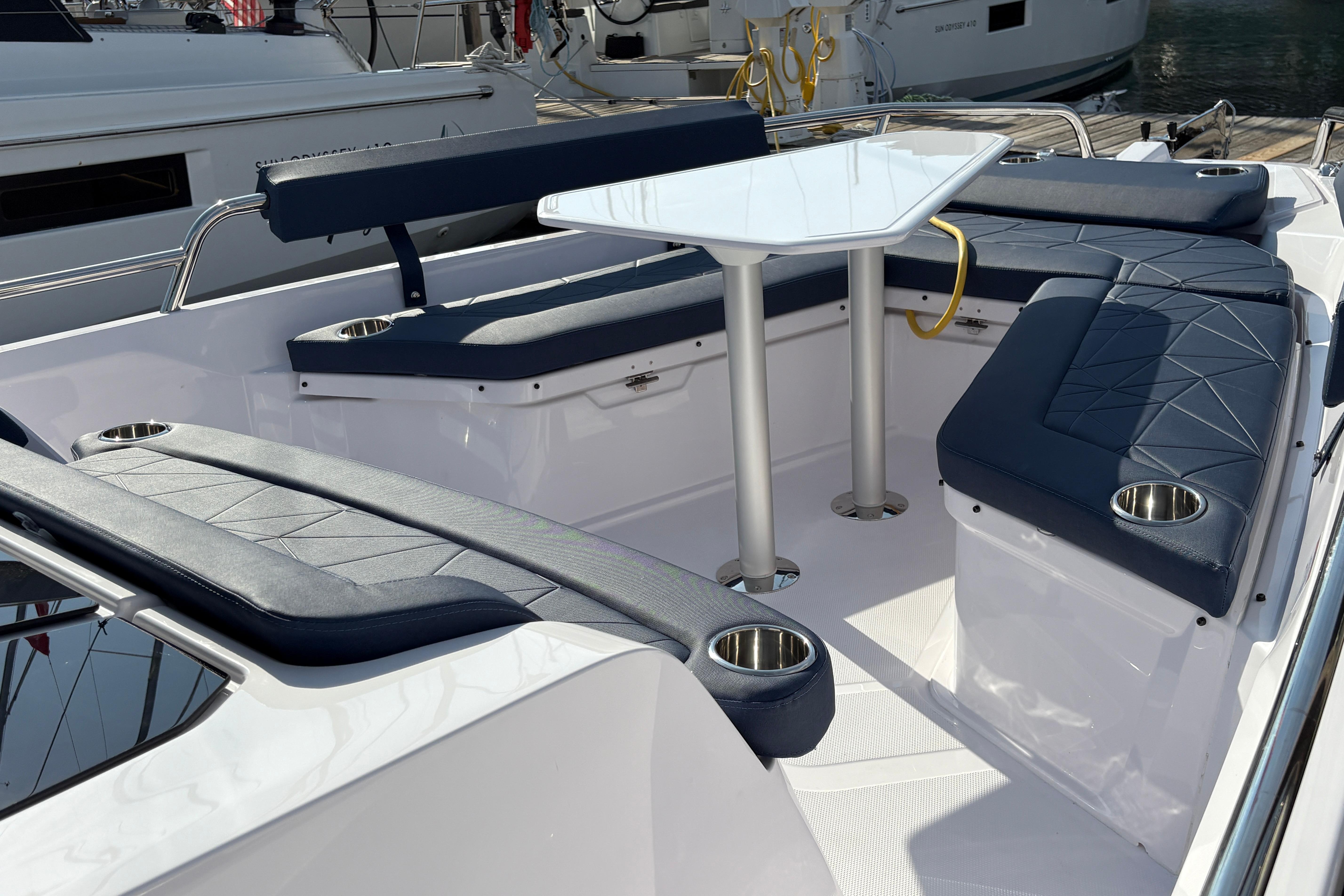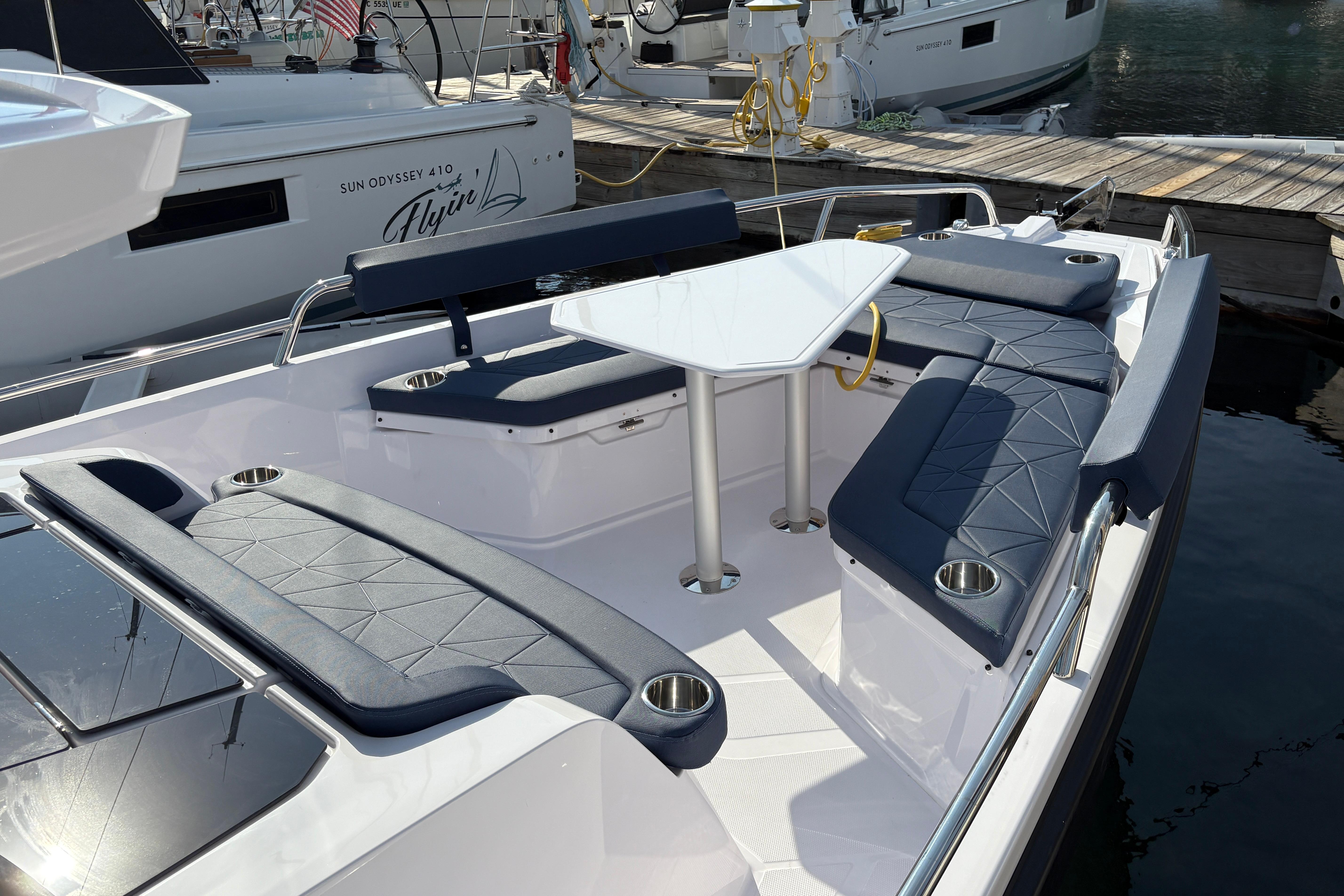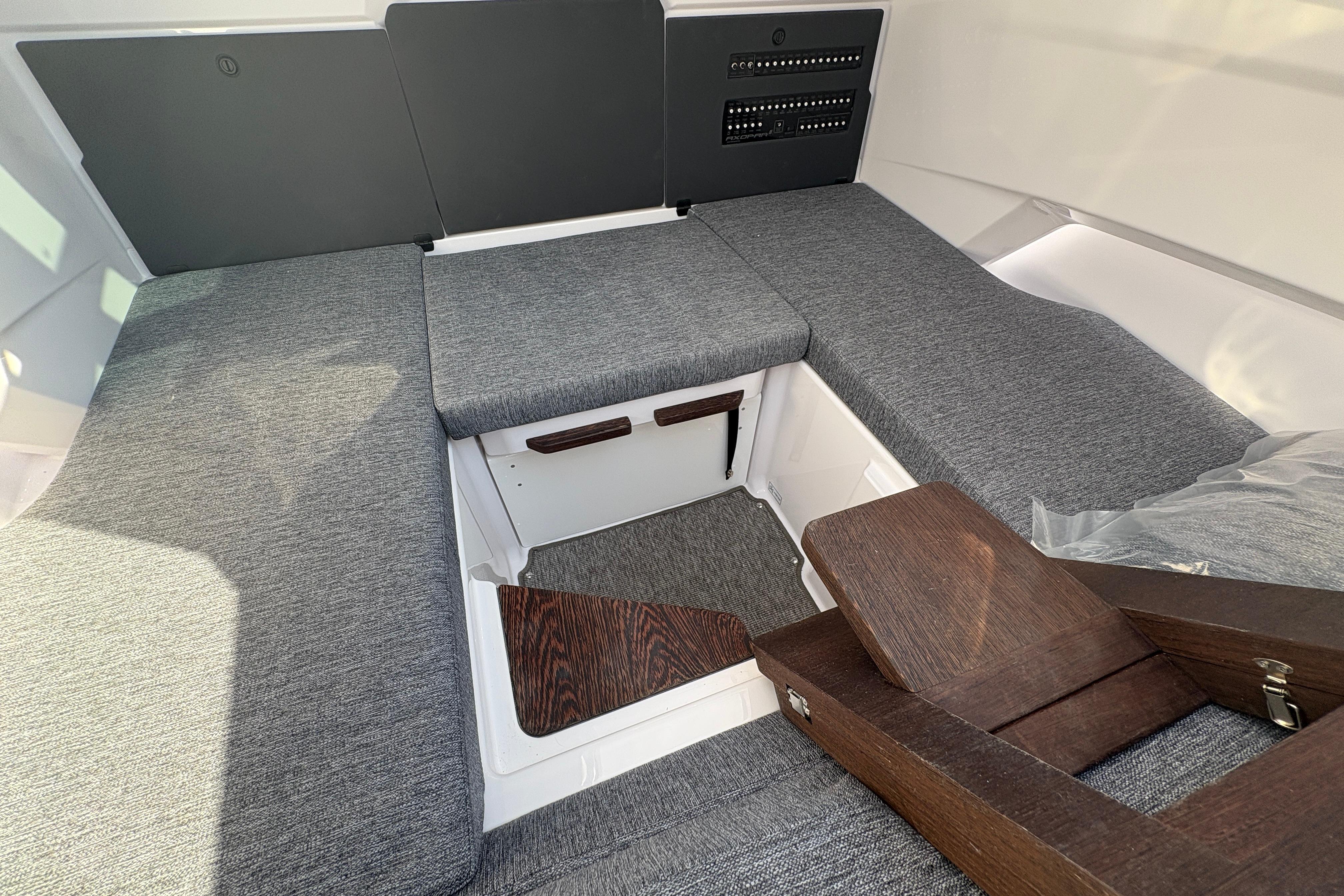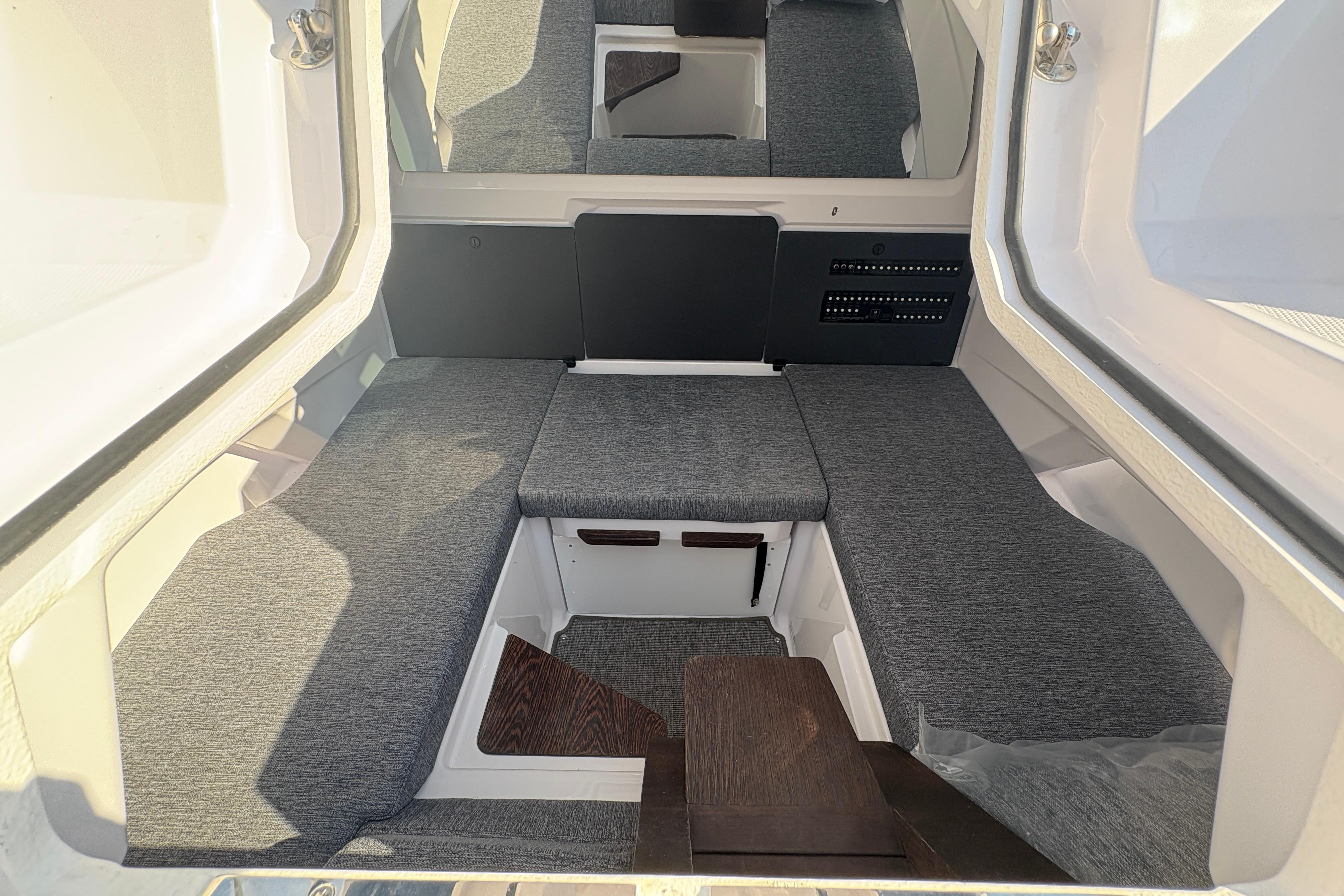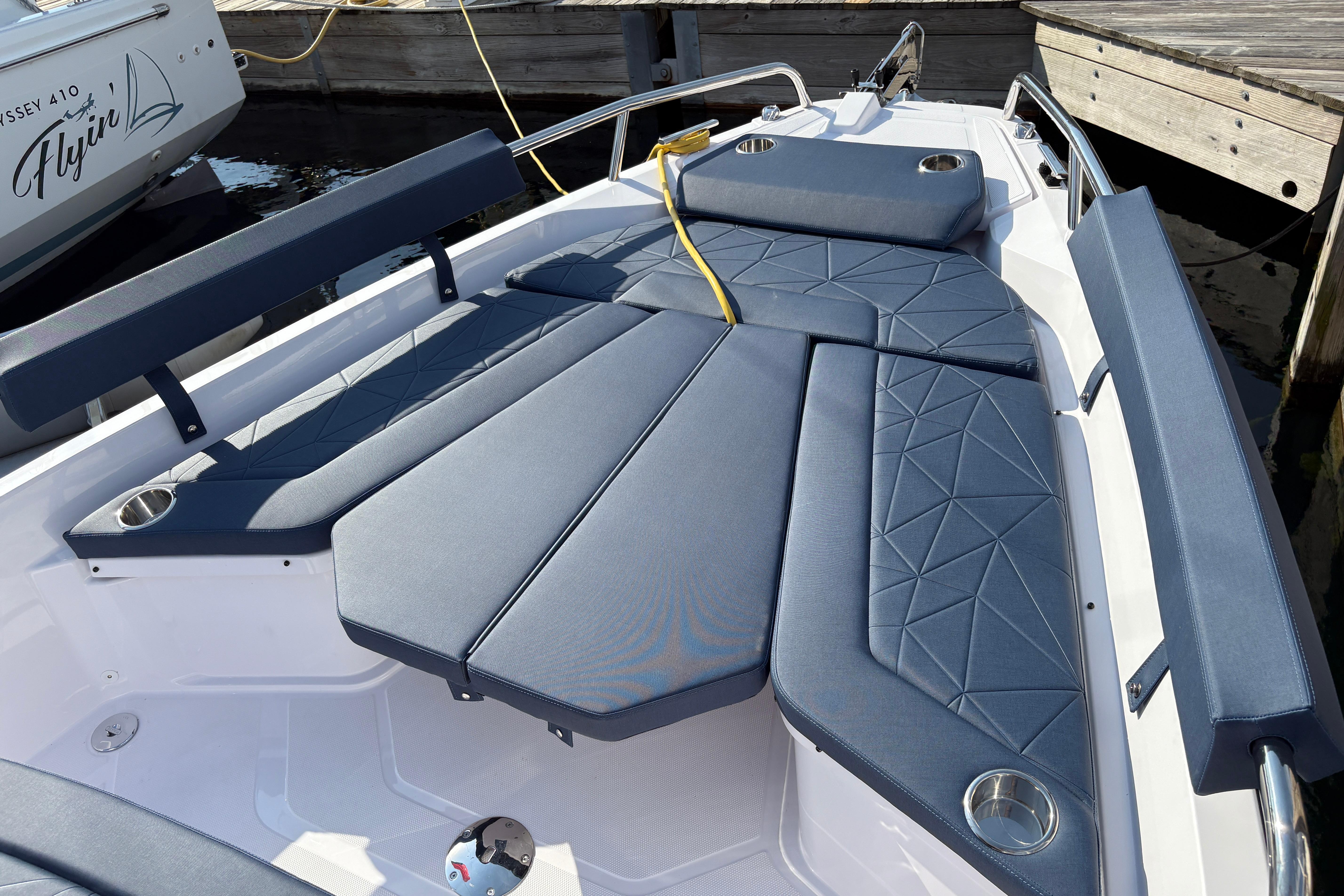 More Hydrodynamic Together with improved hydrodynamics, the bigger 400 liter fuel tank offers a cruising range of 200+ nautical miles, and a wide cruising speed zone between 22 to 32 knots where liters per nautical mile consumption remain almost unchanged. The new hull dynamics also raise the fast-cruising speed of the Axopar 29´s up towards 37 knots, still maintaining good fuel efficiency and driving comfort. More Hydrodynamic Together with improved hydrodynamics, the bigger 400 liter fuel tank offers a cruising range of 200+ nautical miles, and a wide cruising speed zone between 22 to 32 knots where liters per nautical mile consumption remain almost unchanged. The new hull dynamics also raise the fast-cruising speed of the Axopar 29´s up towards 37 knots, still maintaining good fuel efficiency and driving comfort. More Lounging The new layout on the foredeck provides so much more volume in the bow and you can now seat comfortably up to 8 people. Such is the sense of space that when you're looking forward from the helm you could almost imagine yourself being on the Axopar 37.