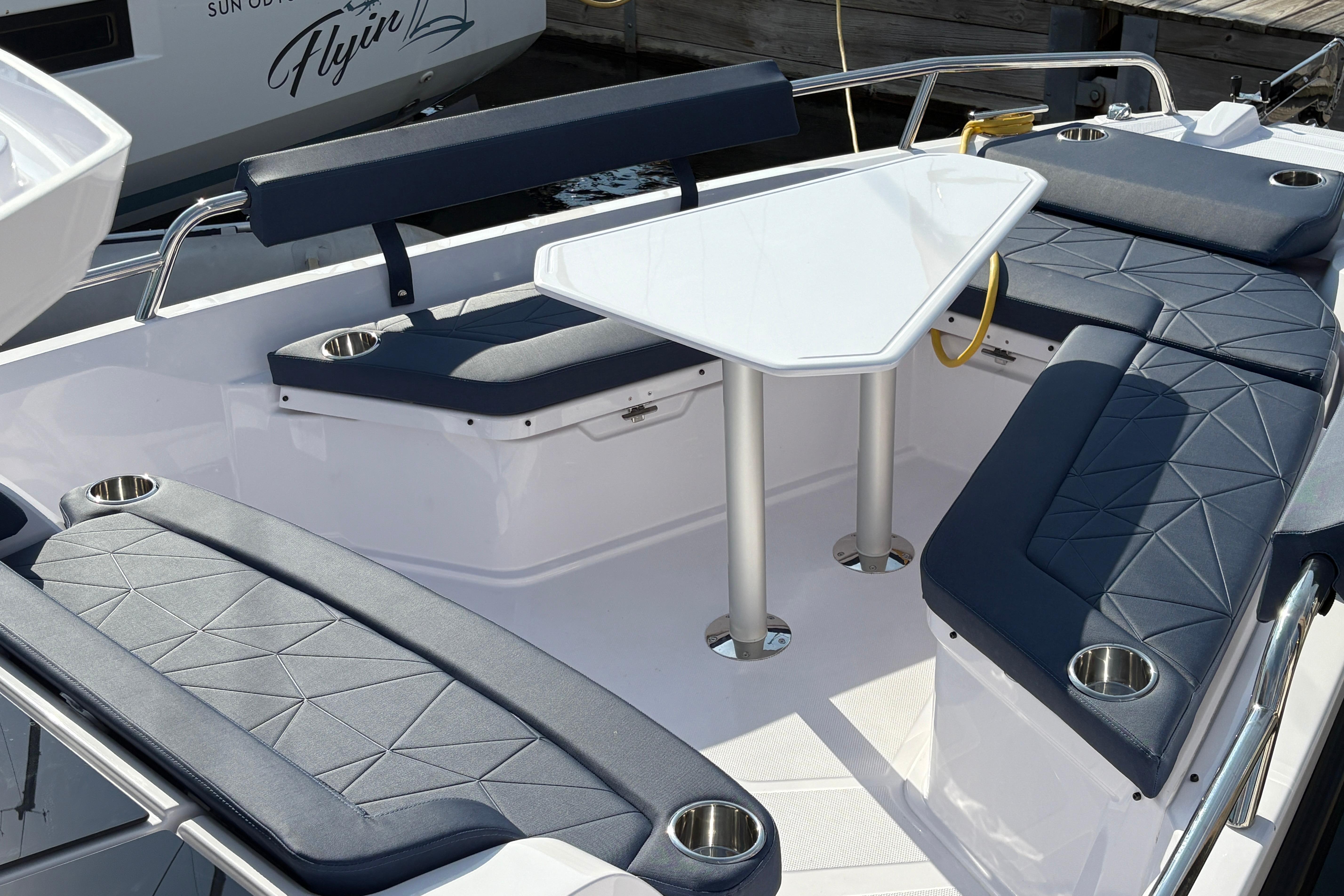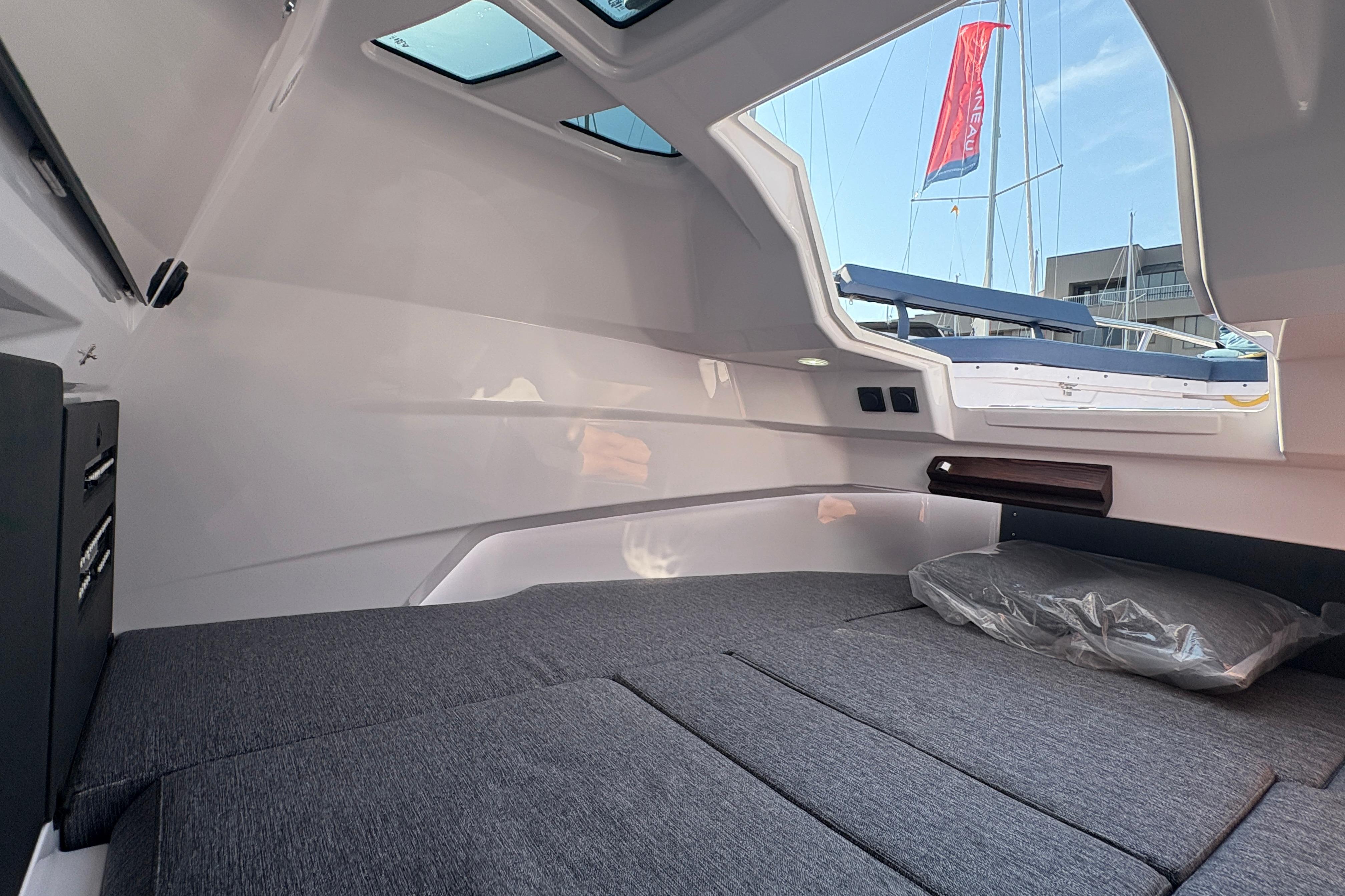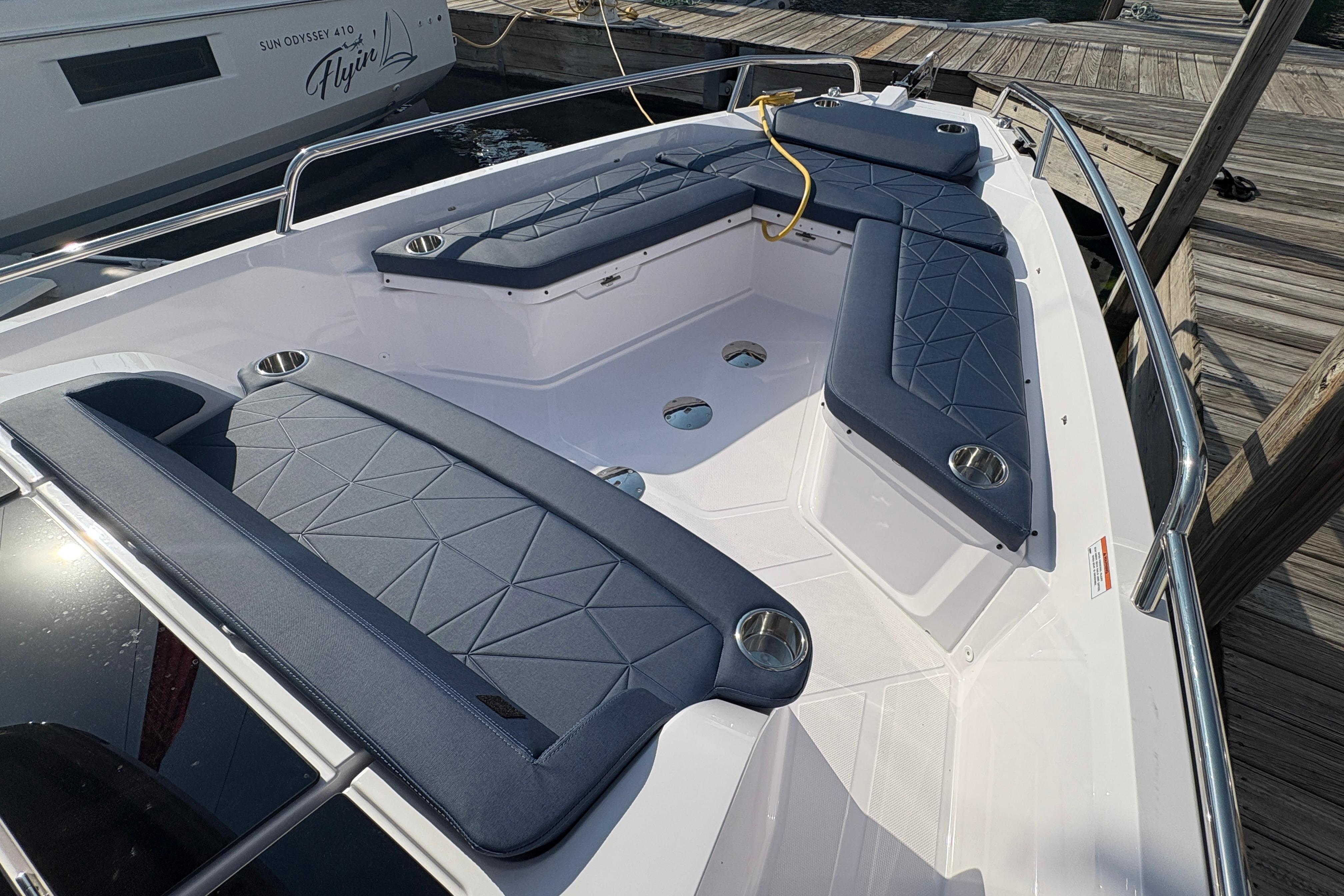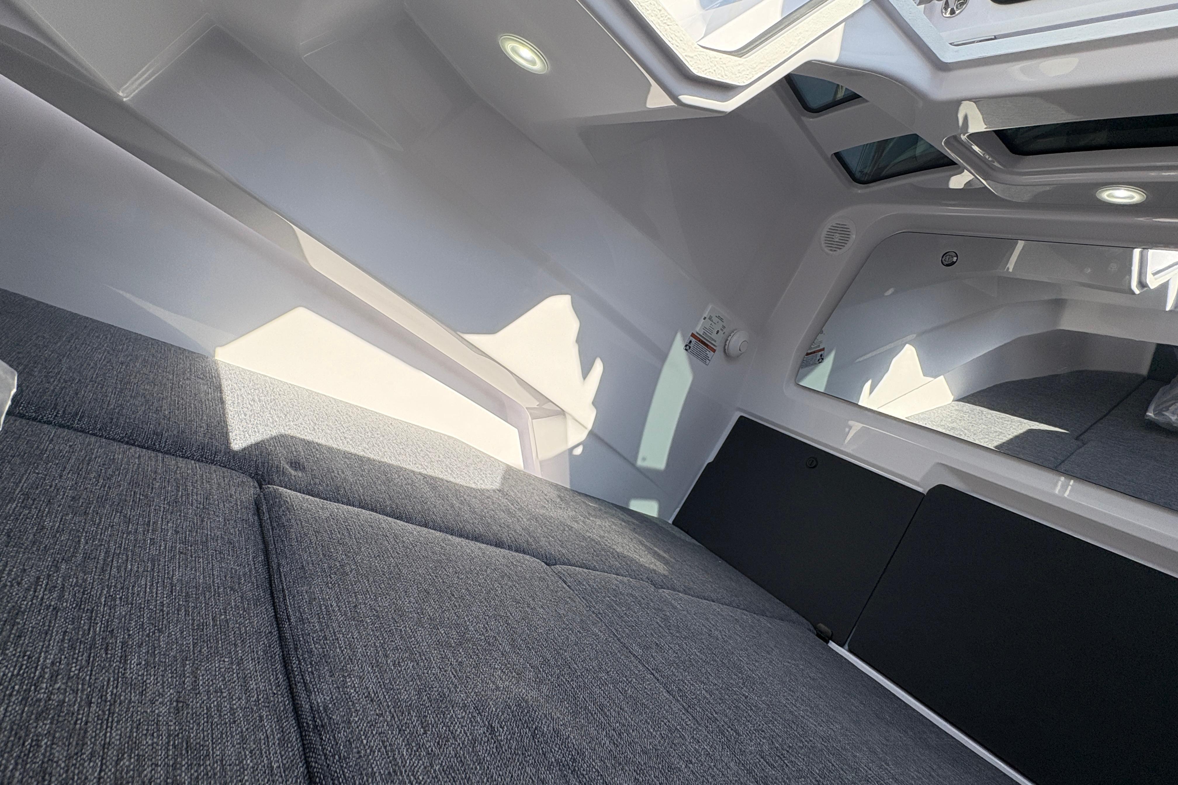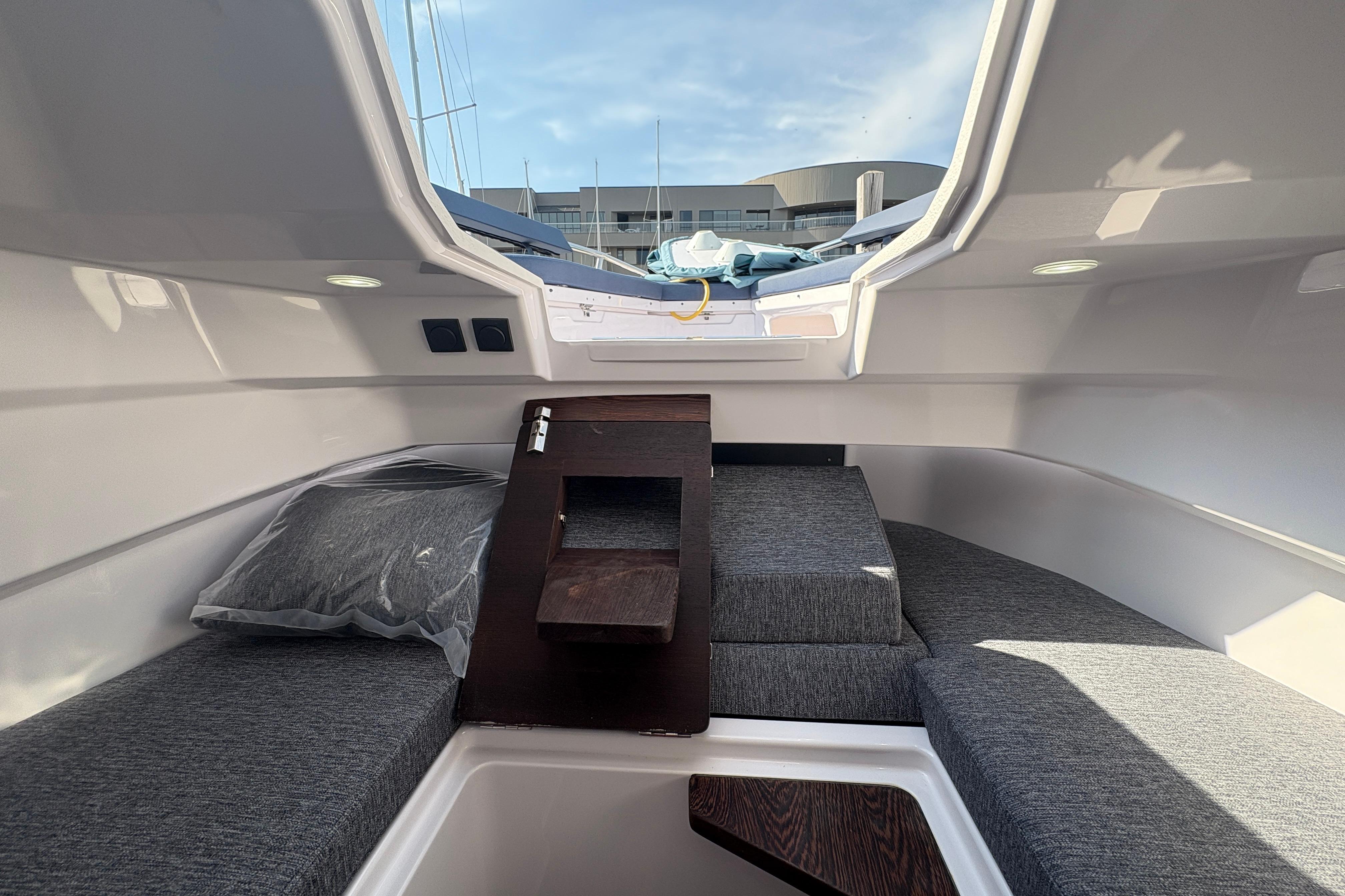 More Hydrodynamic Together with improved hydrodynamics, the bigger 400 liter fuel tank offers a cruising range of 200+ nautical miles, and a wide cruising speed zone between 22 to 32 knots where liters per nautical mile consumption remain almost unchanged. The new hull dynamics also raise the fast-cruising speed of the Axopar 29´s up towards 37 knots, still maintaining good fuel efficiency and driving comfort. More Hydrodynamic Together with improved hydrodynamics, the bigger 400 liter fuel tank offers a cruising range of 200+ nautical miles, and a wide cruising speed zone between 22 to 32 knots where liters per nautical mile consumption remain almost unchanged. The new hull dynamics also raise the fast-cruising speed of the Axopar 29´s up towards 37 knots, still maintaining good fuel efficiency and driving comfort. More Lounging The new layout on the foredeck provides so much more volume in the bow and you can now seat comfortably up to 8 people. Such is the sense of space that when you're looking forward from the helm you could almost imagine yourself being on the Axopar 37.