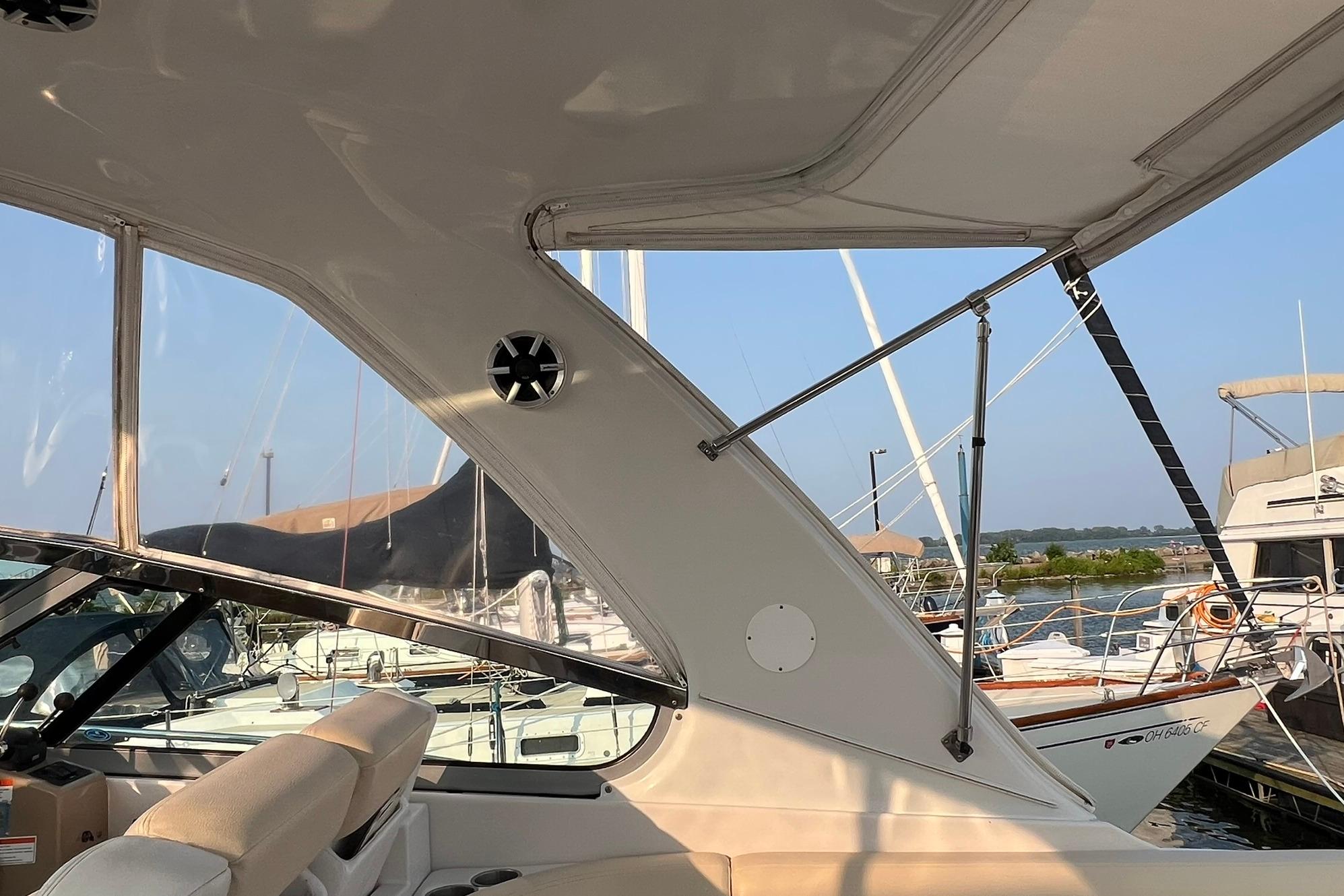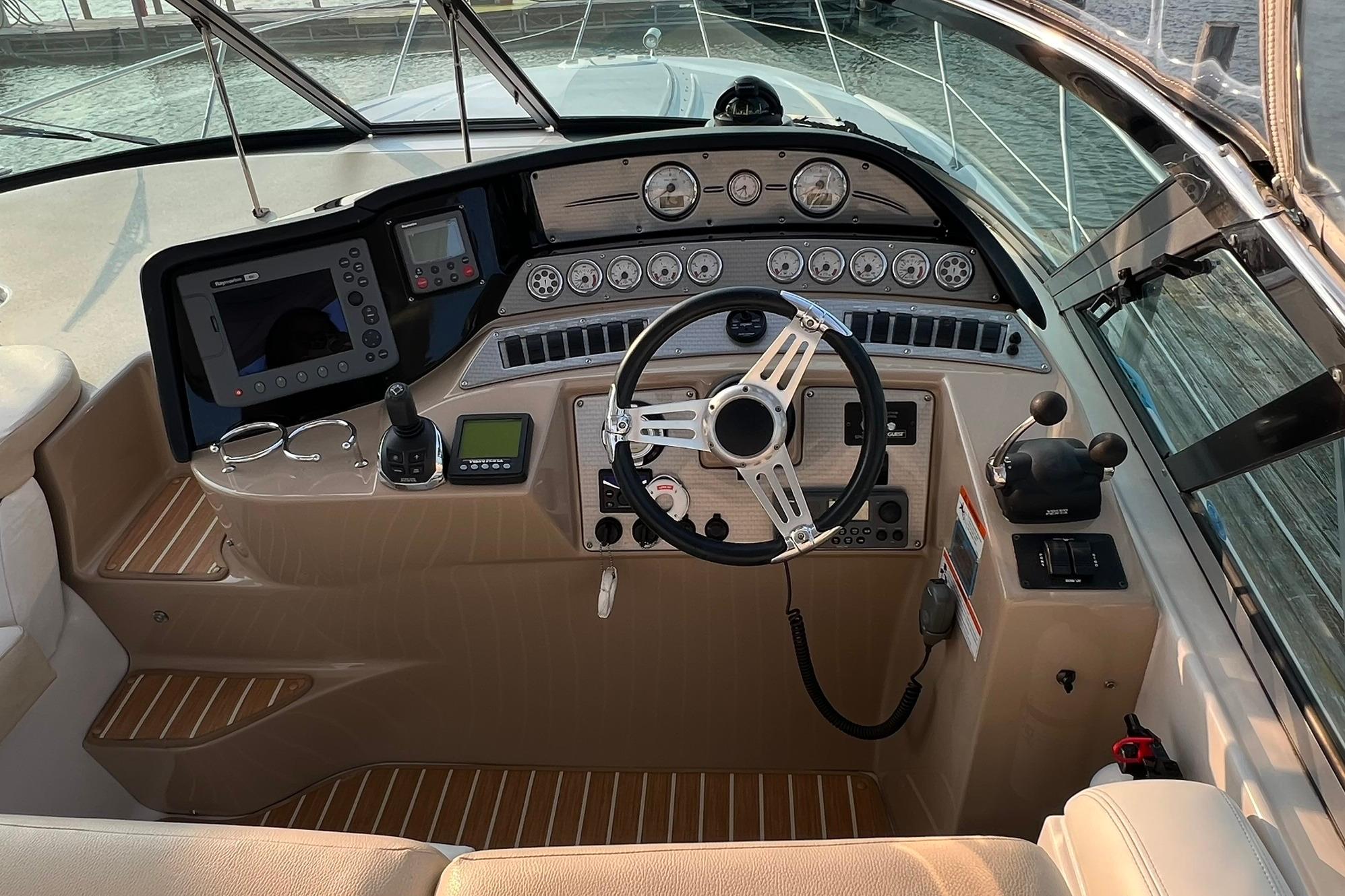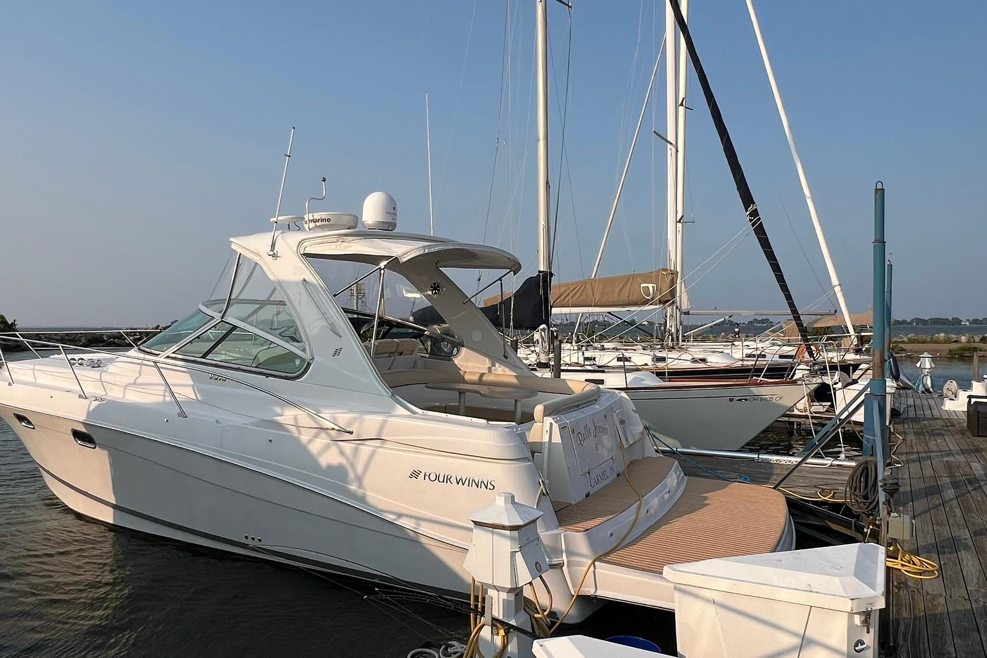 BUY NOW and get Storage included, plus Spring Buff & Wax!!! Powered with twin VOLVO D6. These Diesel engines have just 803 HOURS!! Engines just serviced! Generator just serviced (2025). Current owner has always kept the boat in heated storage. Professionally maintained, serviced, & buffed/waxed each season. Lots of comforts which make this vessel perfect for long trips. Some features to highlight include: Kohler Generator with 365 hours, AC/HEAT, Joystick controls, Navigation, Smart TV with Bluetooth in cabin, vacuum with dedicated storage, ice maker, fridge (2), freezer, large galley with lots of storage & cook space. Aft sofa in cabin converts to a bed with a simple push of a button. Canvas & isinglass redone (Spring 2025). Massive swim platform. Upgraded flooring. Includes filler cushion for cockpit table & bow cushions for lounging. New bottom paint (Fall 2024). 4 New batteries (2024). New Fireboy fire extinguisher (2025). Boat is located in Sandusky, Ohio. Contact Laura for more info or to schedule an appointment.