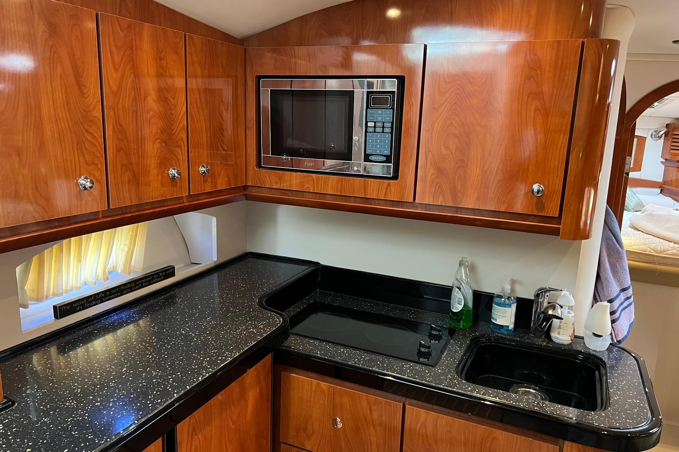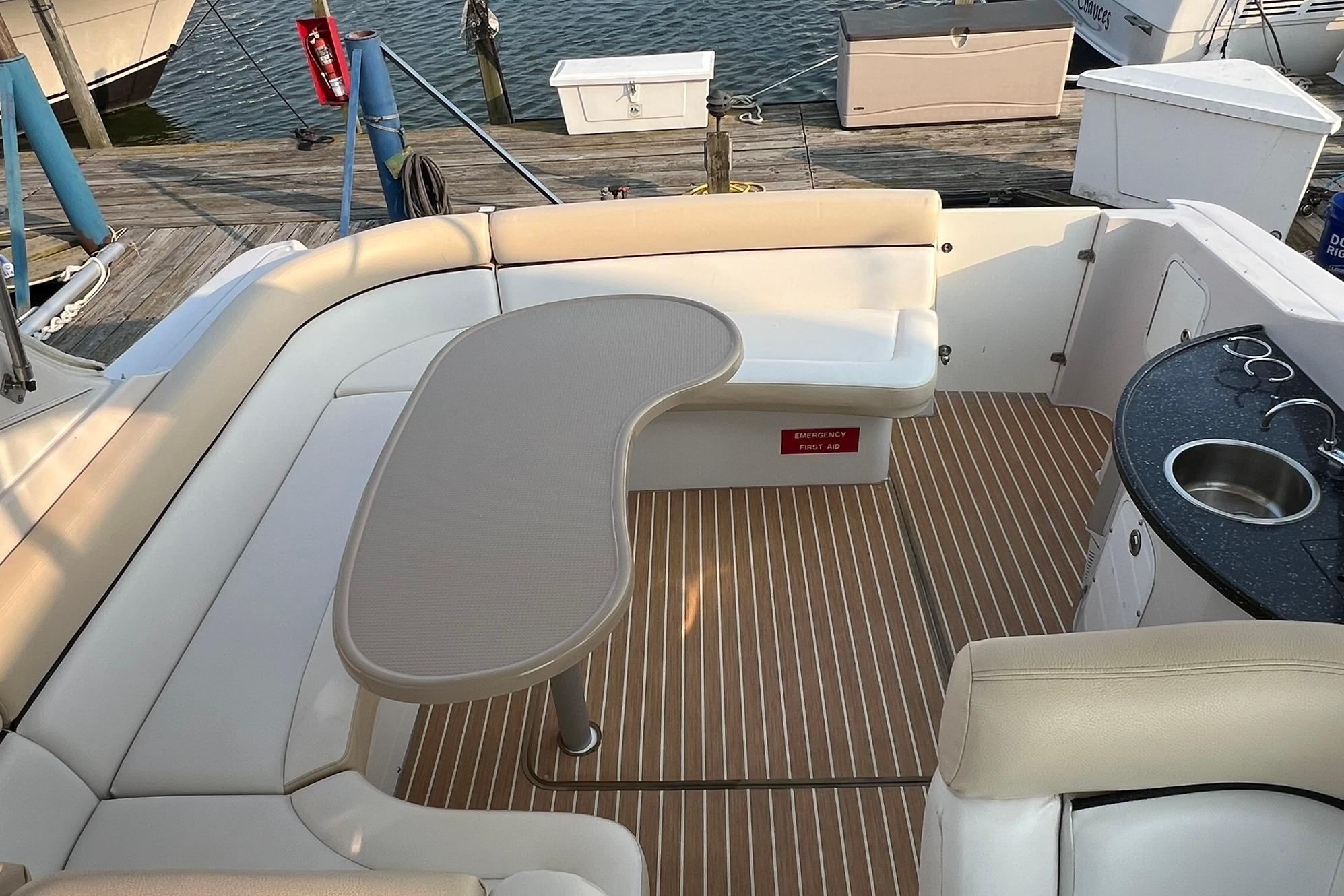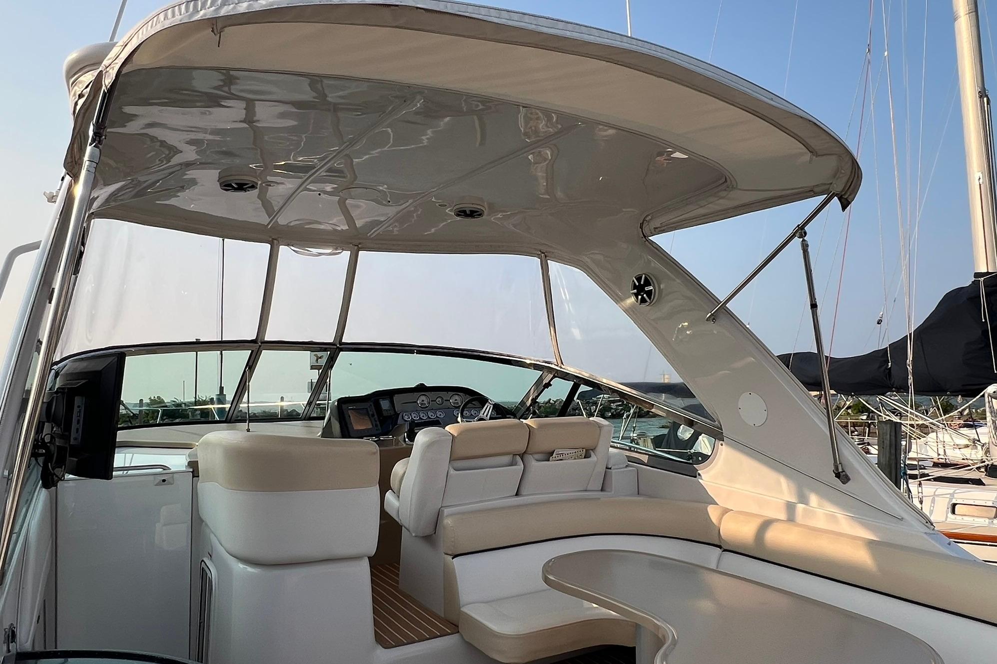BUY NOW and get Storage included, plus Spring Buff & Wax!!! Powered with twin VOLVO D6. These Diesel engines have just 803 HOURS!! Engines just serviced! Generator just serviced (2025). Current owner has always kept the boat in heated storage. Professionally maintained, serviced, & buffed/waxed each season. Lots of comforts which make this vessel perfect for long trips. Some features to highlight include: Kohler Generator with 365 hours, AC/HEAT, Joystick controls, Navigation, Smart TV with Bluetooth in cabin, vacuum with dedicated storage, ice maker, fridge (2), freezer, large galley with lots of storage & cook space. Aft sofa in cabin converts to a bed with a simple push of a button. Canvas & isinglass redone (Spring 2025). Massive swim platform. Upgraded flooring. Includes filler cushion for cockpit table & bow cushions for lounging. New bottom paint (Fall 2024). 4 New batteries (2024). New Fireboy fire extinguisher (2025). Boat is located in Sandusky, Ohio. Contact Laura for more info or to schedule an appointment.
