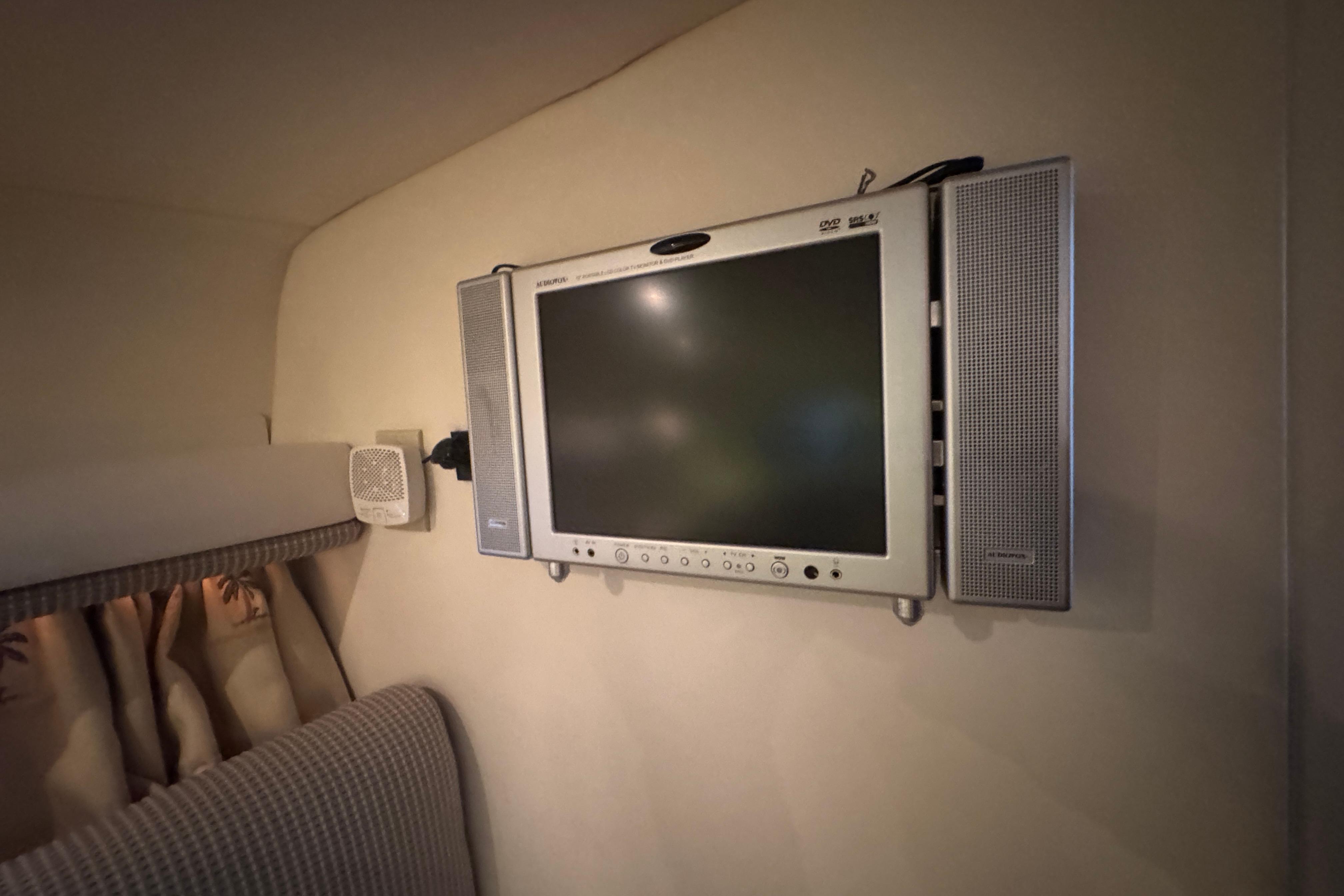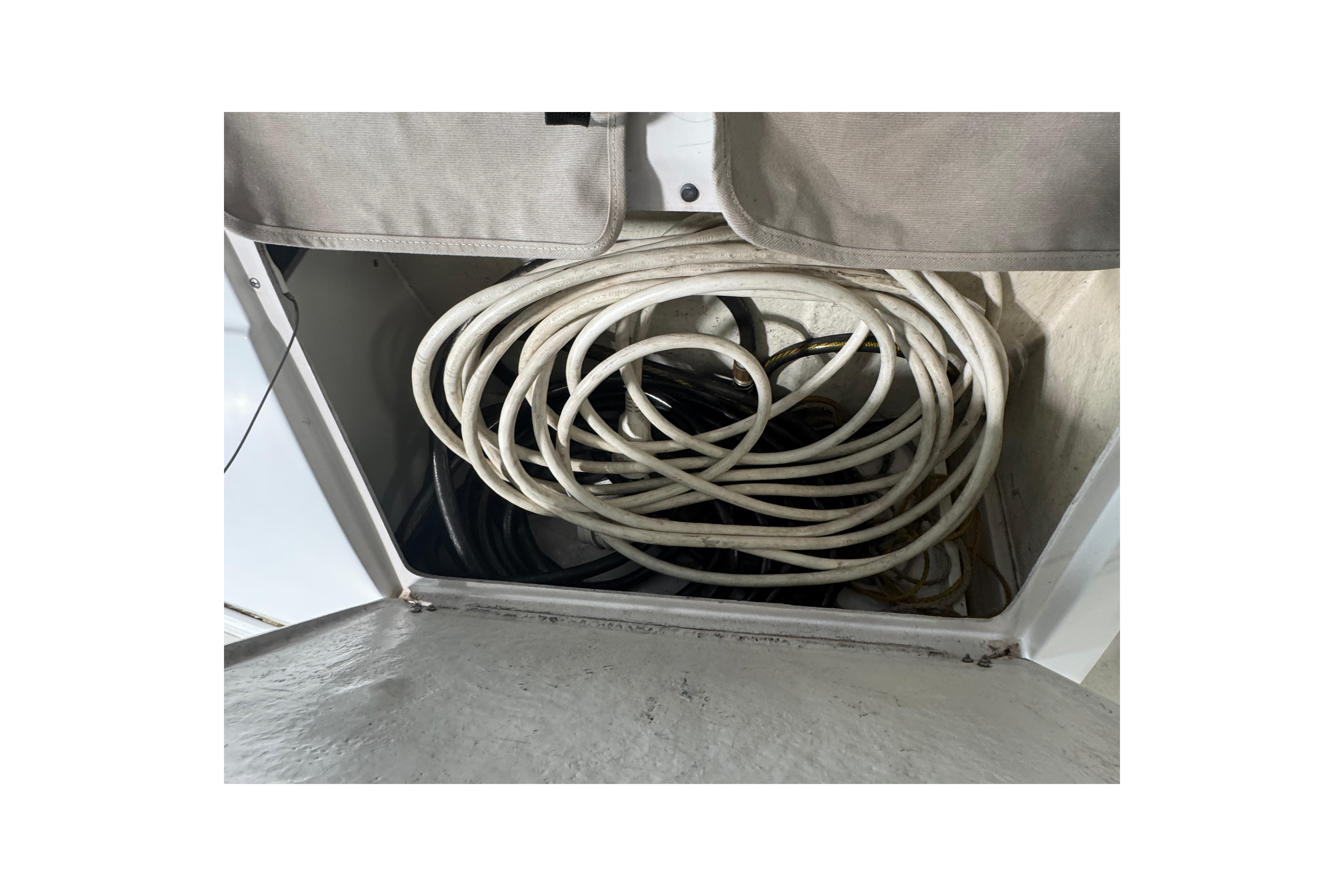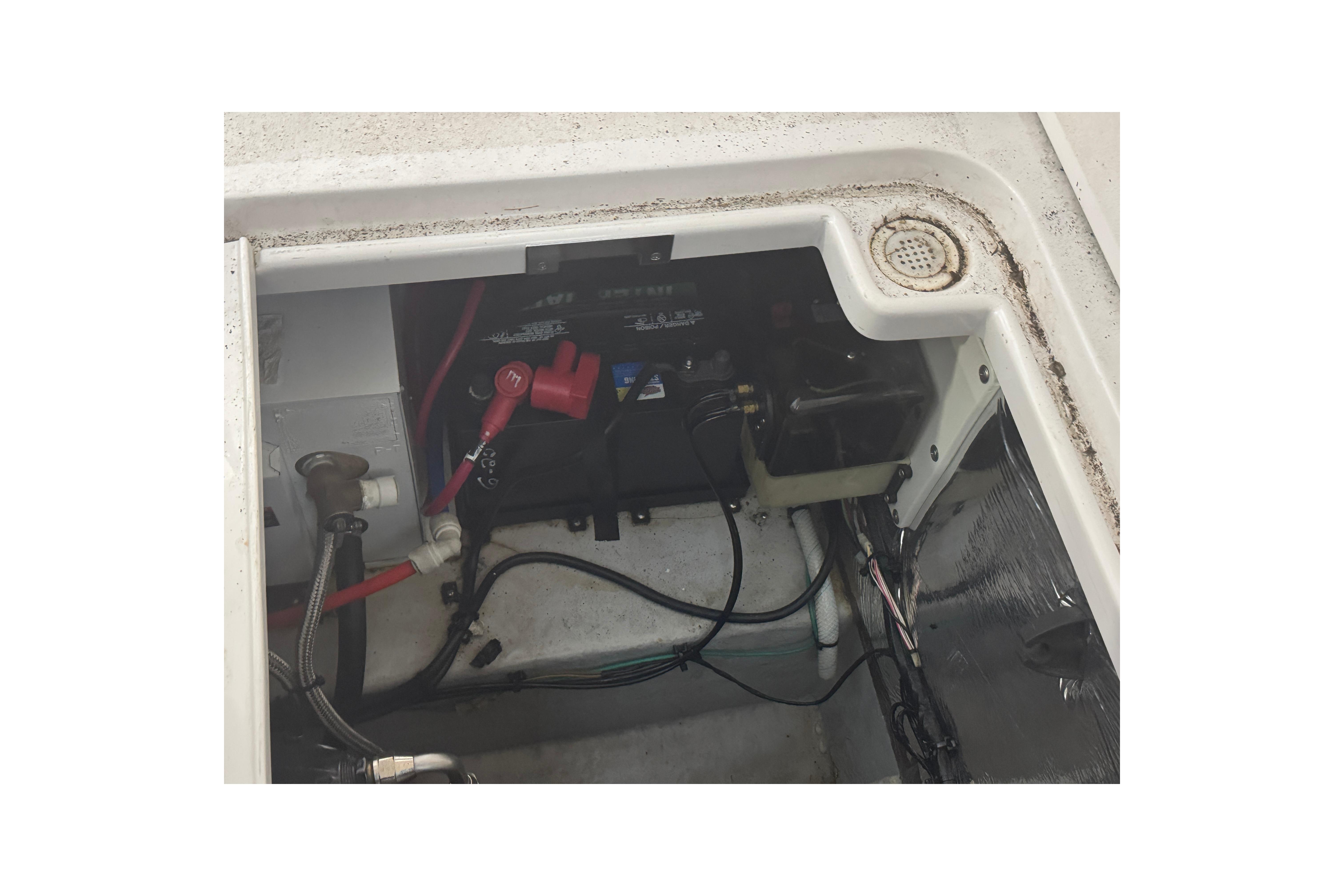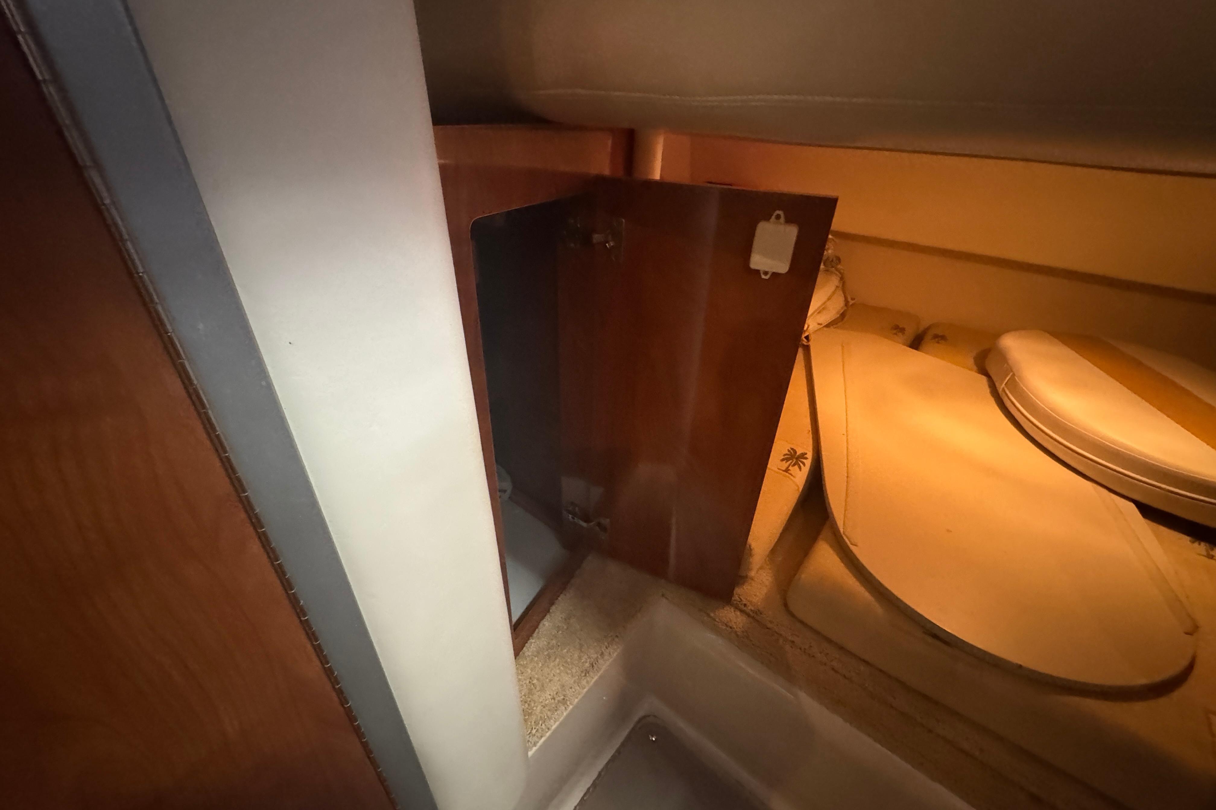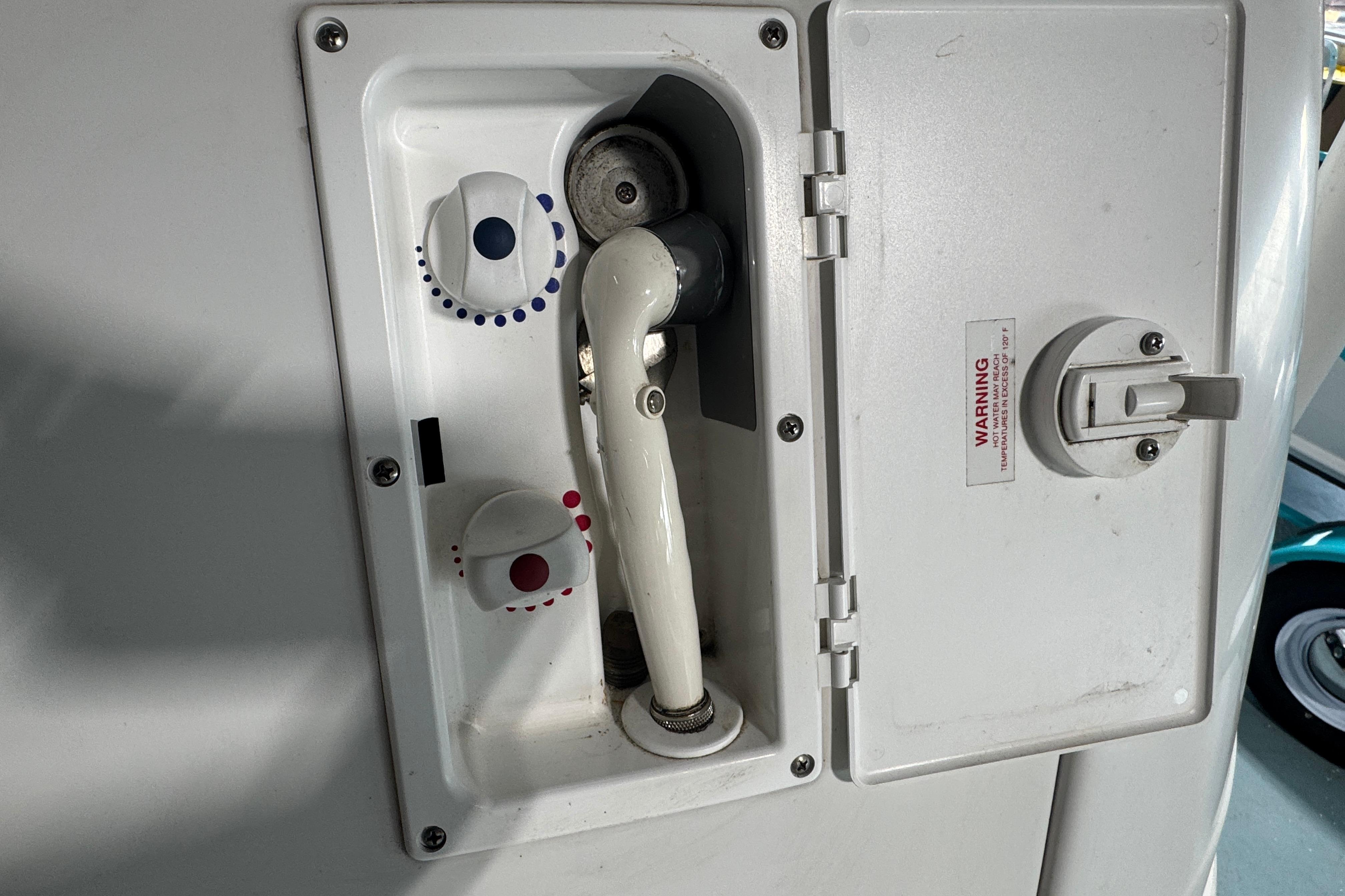 Below deck, the bright and inviting cabin features a fully equipped galley with refrigerator, microwave, stove, and sink, plus a private head with hot water and ample storage. The convertible dinette offers comfortable overnight accommodations for family or friends.